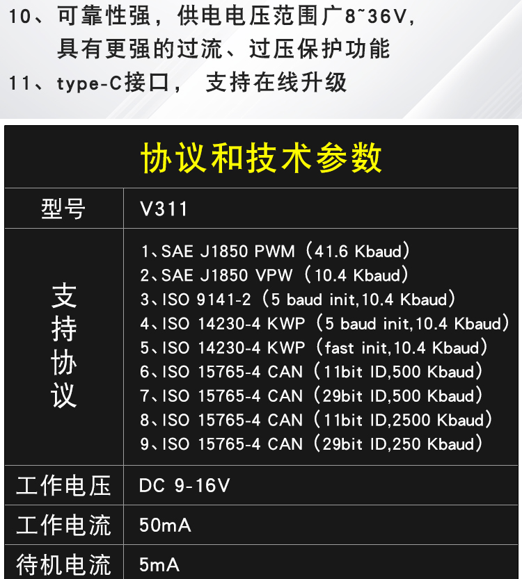 V311 자동차 결함 탐지기 진단 기기 obd 탐지기 구동 컴퓨터 디코더 디코더 리무버