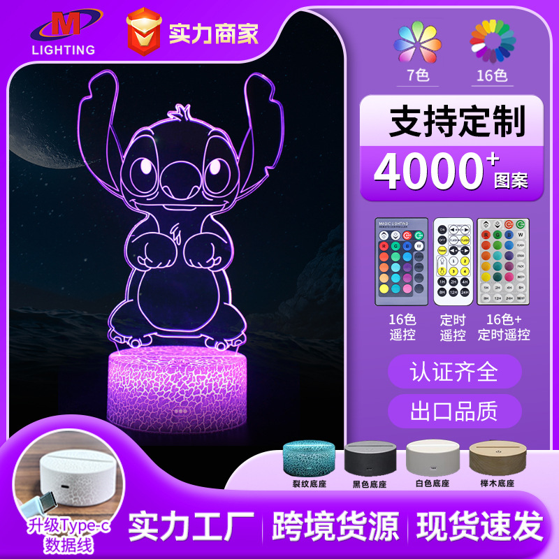 만화 스타 아기 스틸 슨 시리즈 창조적 인 3d 나이트 라이트 터치 침대 옆 램프 야간 조명 전용 국경