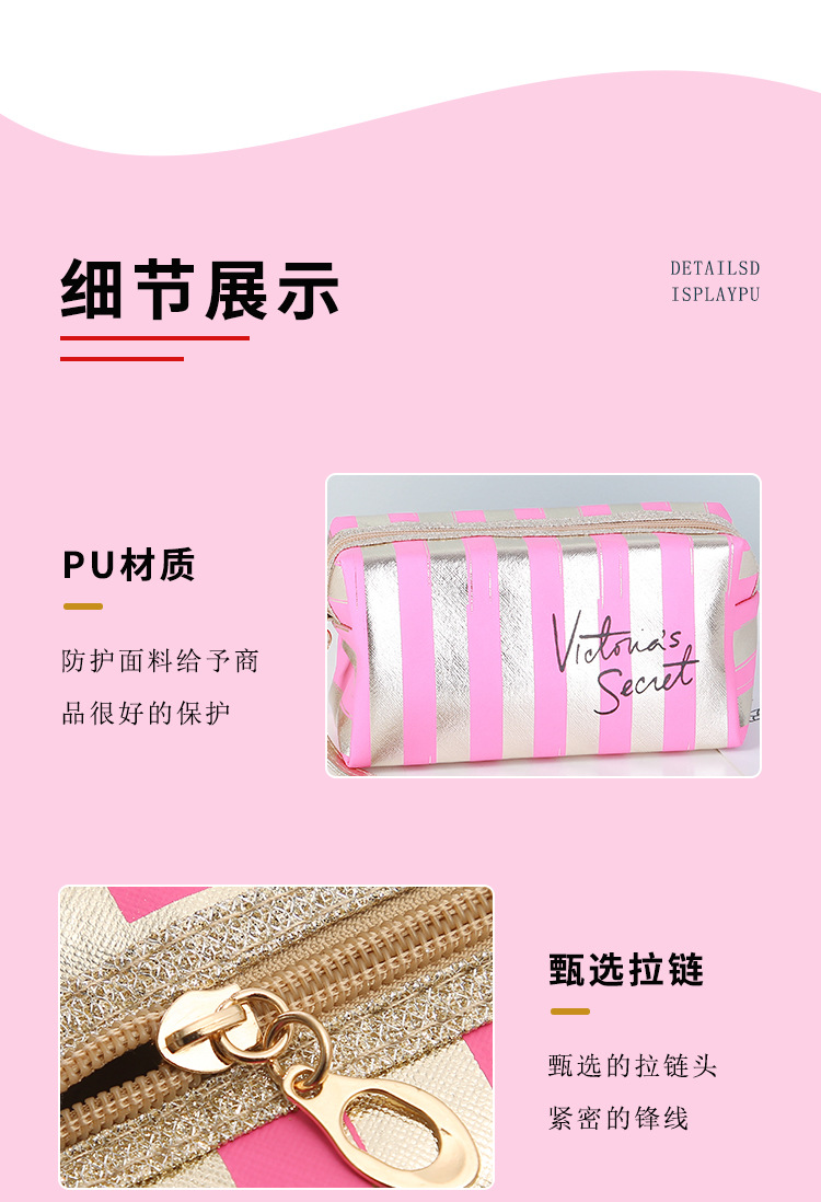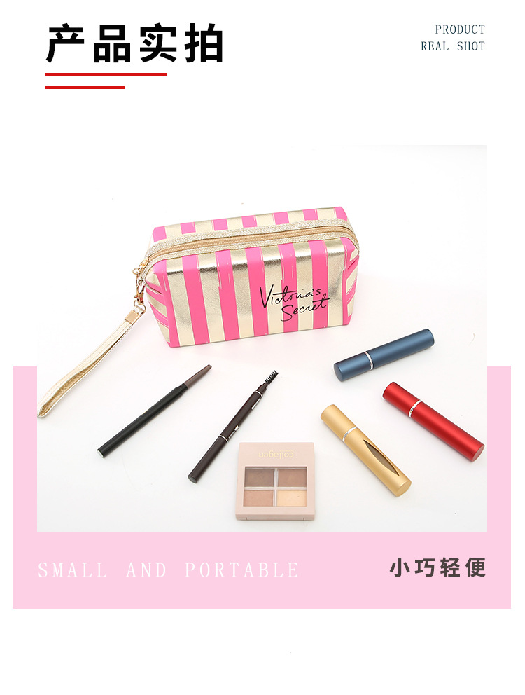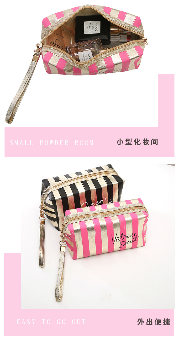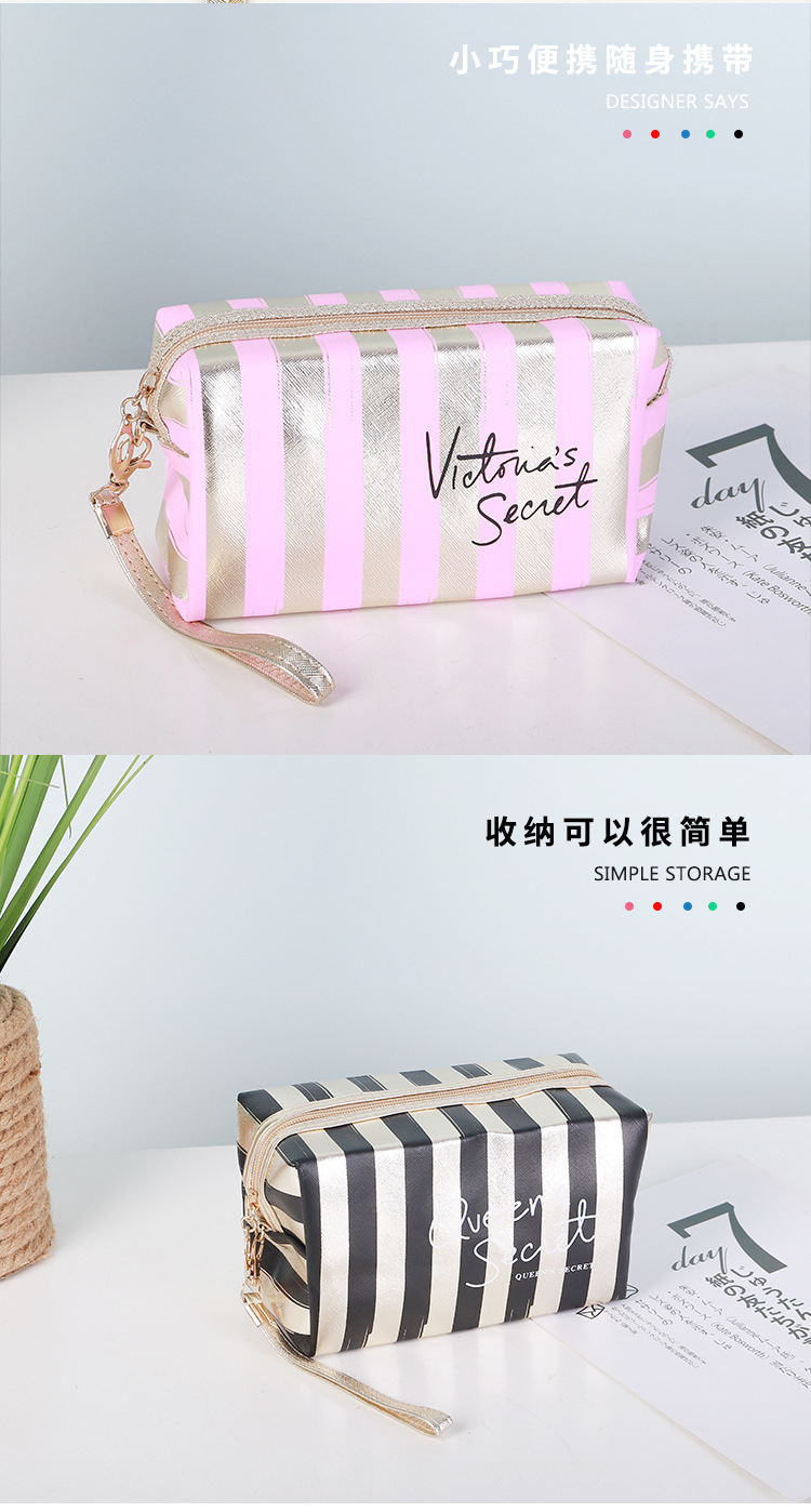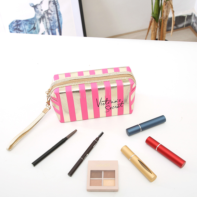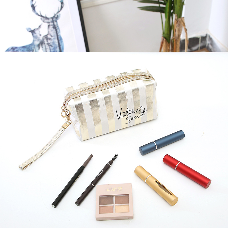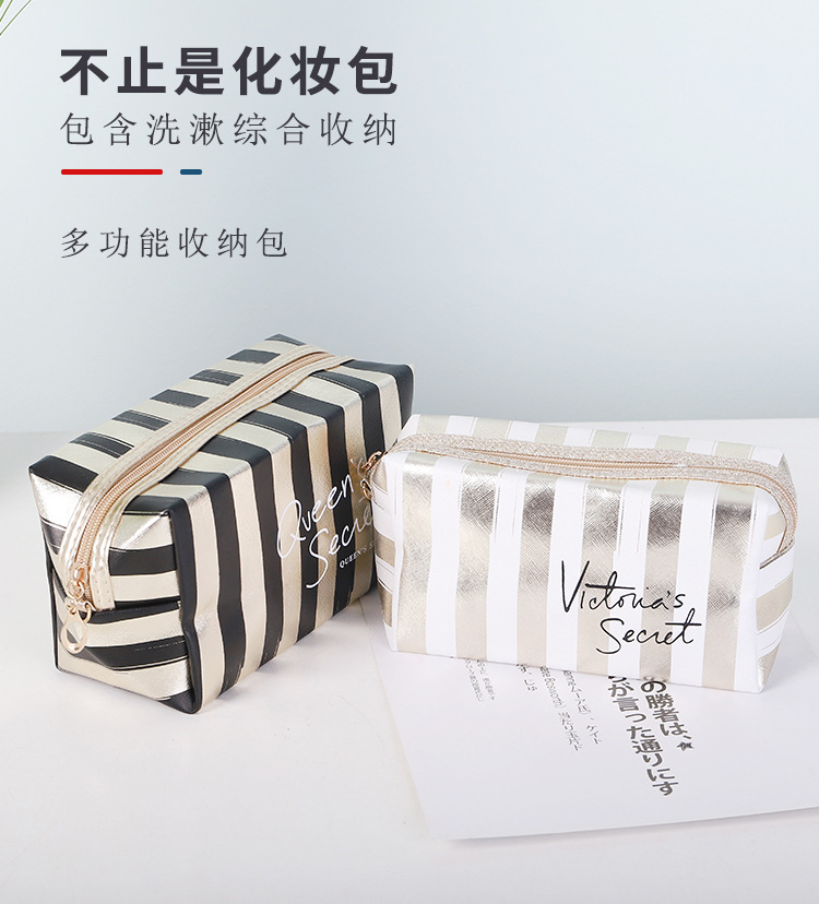 새로운 프놈펜 스트라이프 화장품 가방 Pu 가죽 레이저 팔각형 보관 가방 여성용 핸드백 휴대용 세면도구 가방스토어 가기