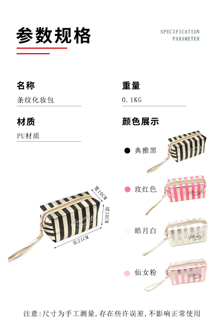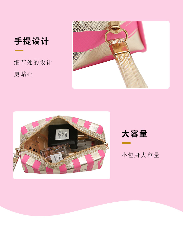 새로운 프놈펜 스트라이프 화장품 가방 Pu 가죽 레이저 팔각형 보관 가방 여성용 핸드백 휴대용 세면도구 가방