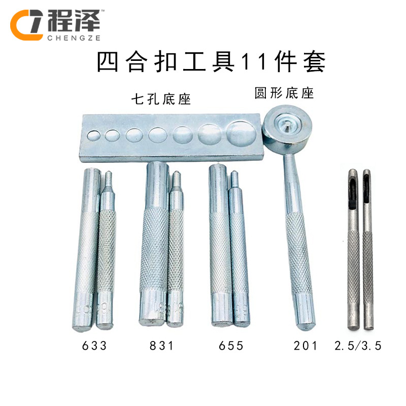 产品规格:801一付、633一付、655一付、201一支、圆形底座一个、七孔底座一个、2.5mm冲子一支、3mm冲子一支