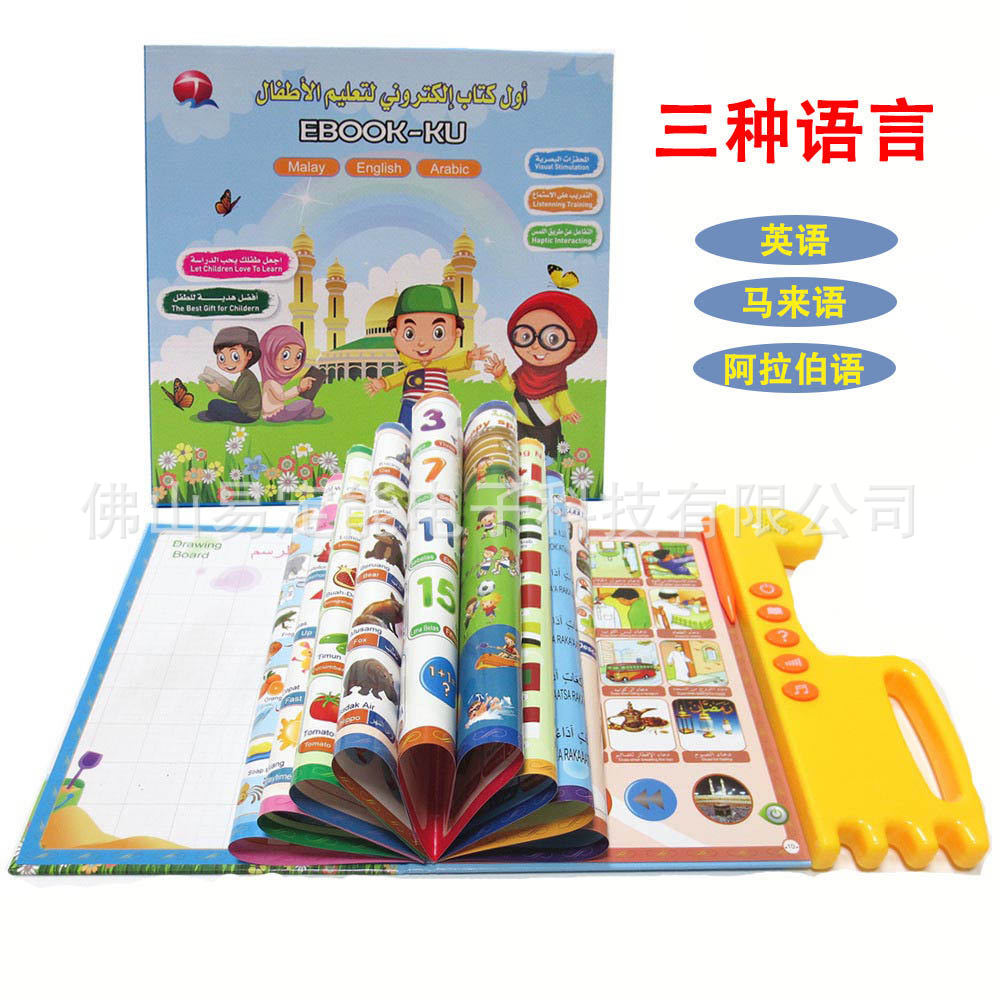 跨境kids toys早教机 英文电子发声书益智玩具有声点读书可做俄语