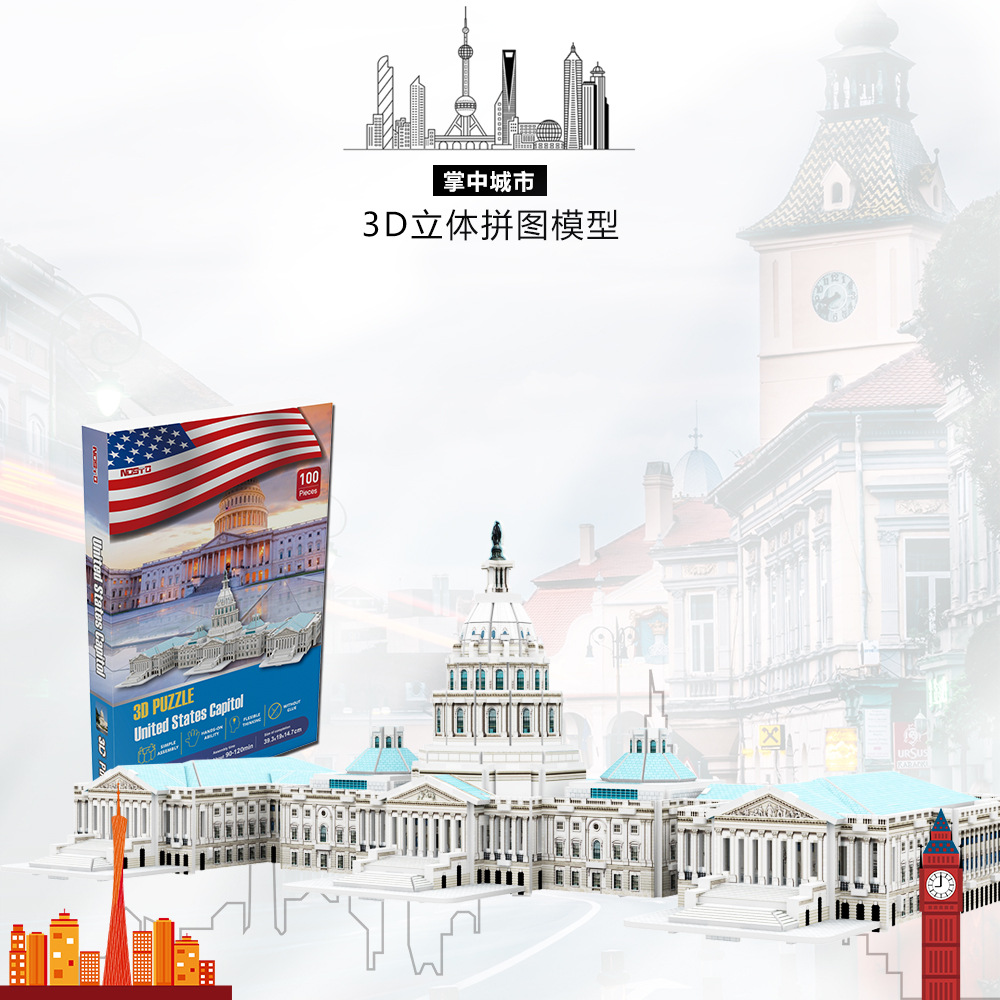국경 간 입체 퍼즐 세계적으로 유명한 건물 시리즈 지리 교육 보조 DIY 조립 모델 과학 및 교육 장난감 재미스토어 가기