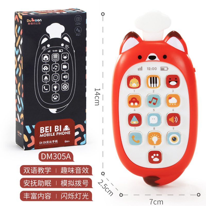 아기 음악 시뮬레이션 터치 스크린 전화 폭스 고양이 요리사 휴대 전화 아기 부드러운 고무 물린 교육 장난감 0-3 세