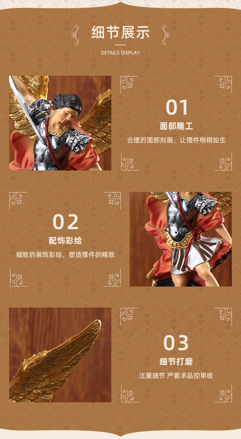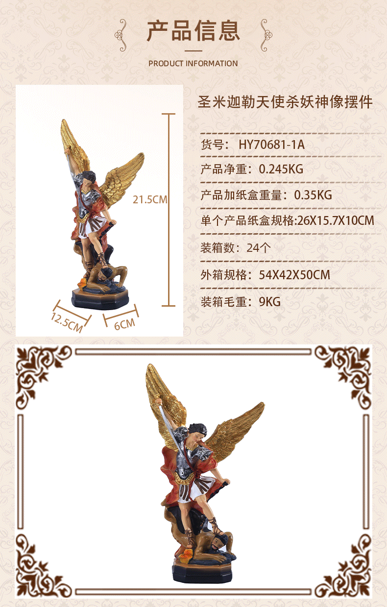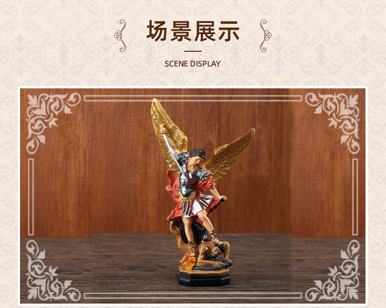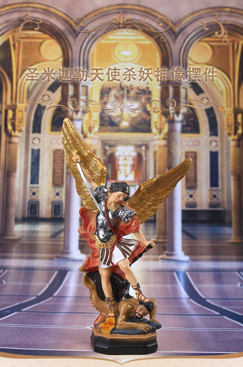 국경 간 공급 업체 21.5CM 높이 고전적인 세인트 미르가 천사 악마 살해상 장식품 장식 수지 공예품스토어 가기