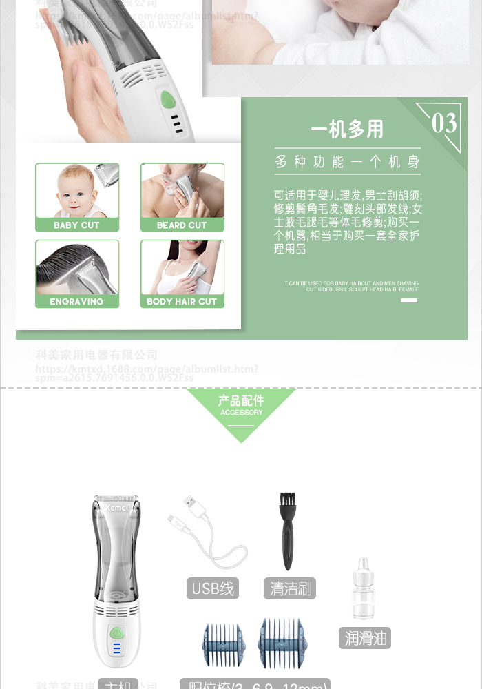 KM-79 코메이 이발기 유아 자동 머리카락 흡입기 아기 이발 무소음 어린이 전기 이발기