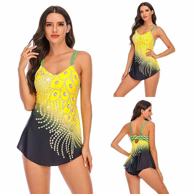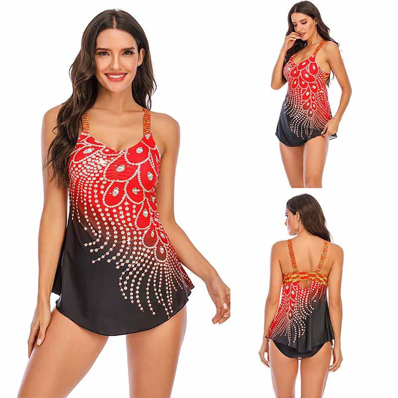 아마존 유럽과 미국 대외 무역 새로운 비키니 끈이없는 인쇄 다이아몬드 깃털 색상 대비 분할 플러스 사이즈 수영복 여성스토어 가기