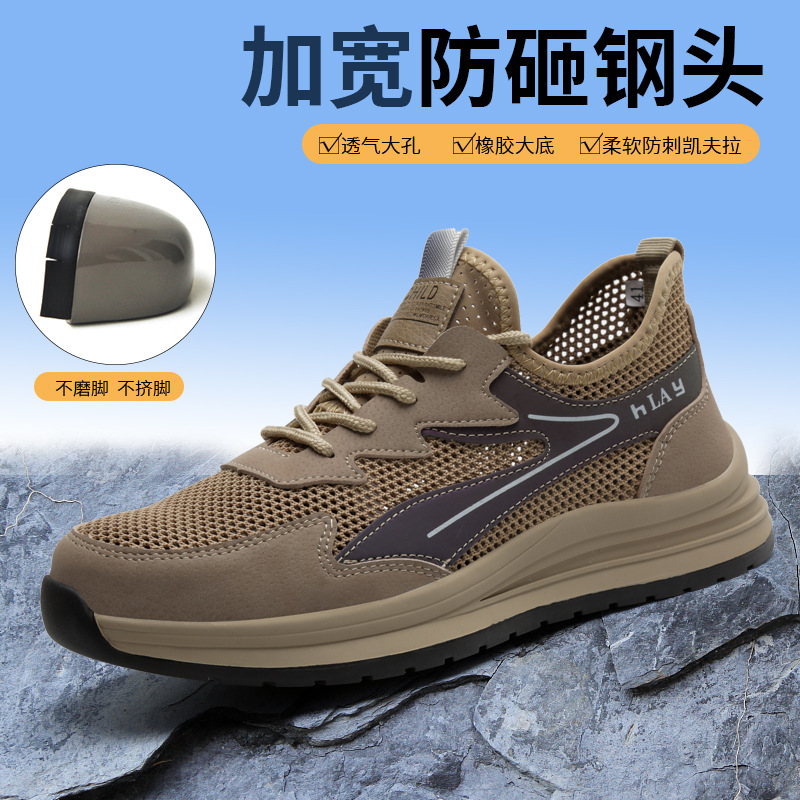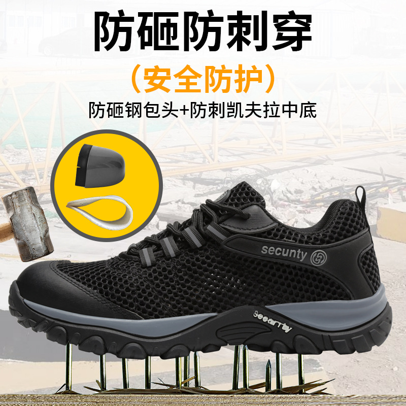 노동 보호 신발 남성용 안티 스매싱 및 안티 피어싱 여름 통기성 내마모성 경량 미끄럼 방지 안전 보호 작업 신발 제조업체 재고스토어 가기