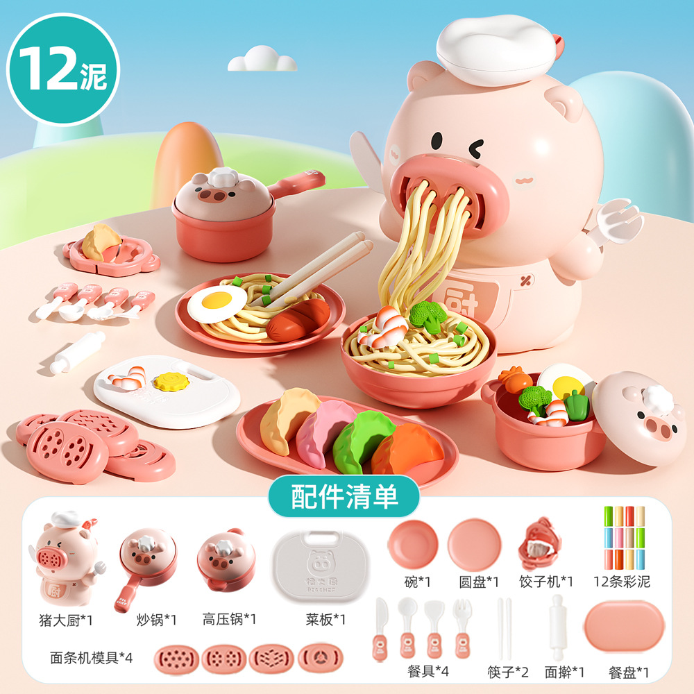 어린이 플라스틱 새끼 돼지 국수 기계 색상 진흙 금형 도구 세트 소녀 인터넷 축하 TikTok 같은 점토