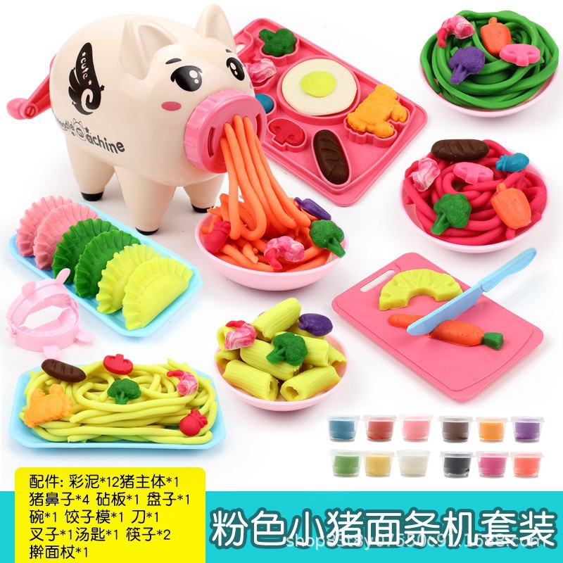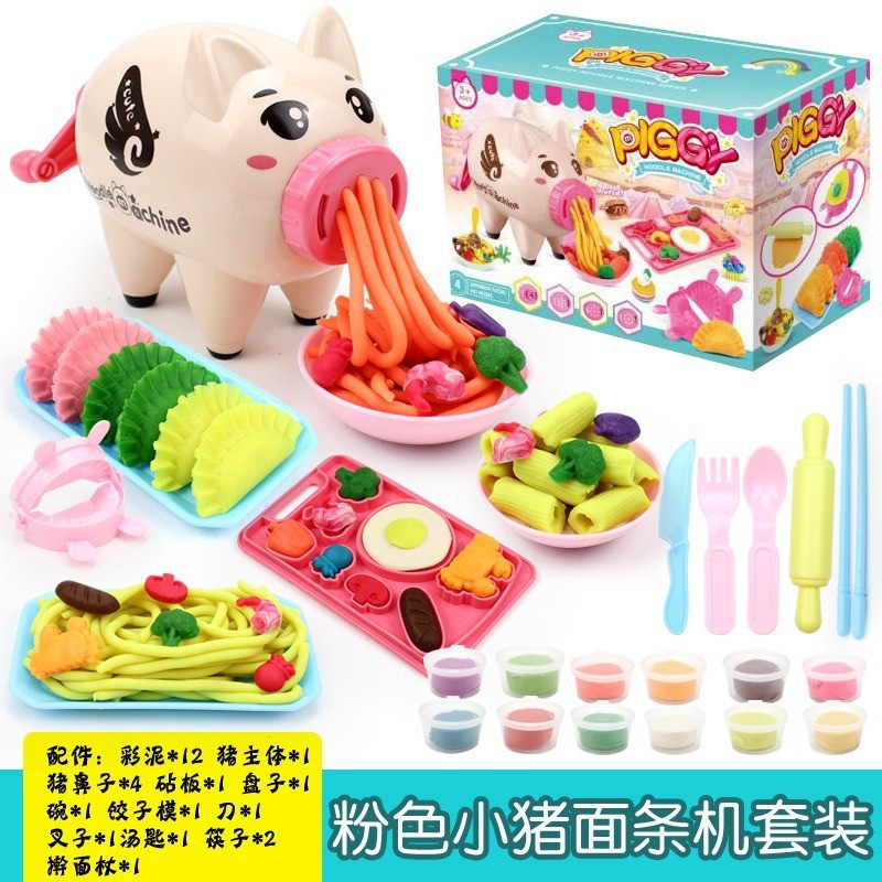 어린이 플라스틱 새끼 돼지 국수 기계 색상 진흙 금형 도구 세트 소녀 인터넷 축하 TikTok 같은 점토스토어 가기