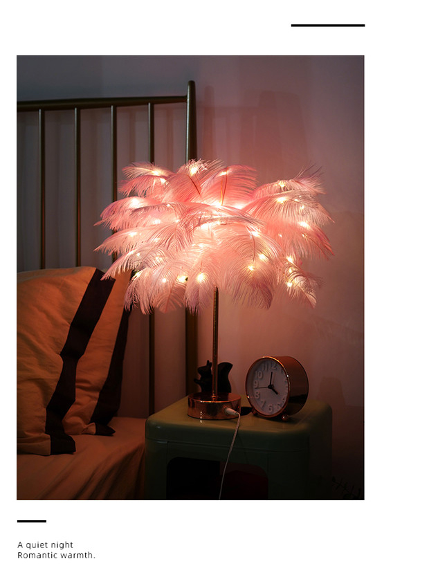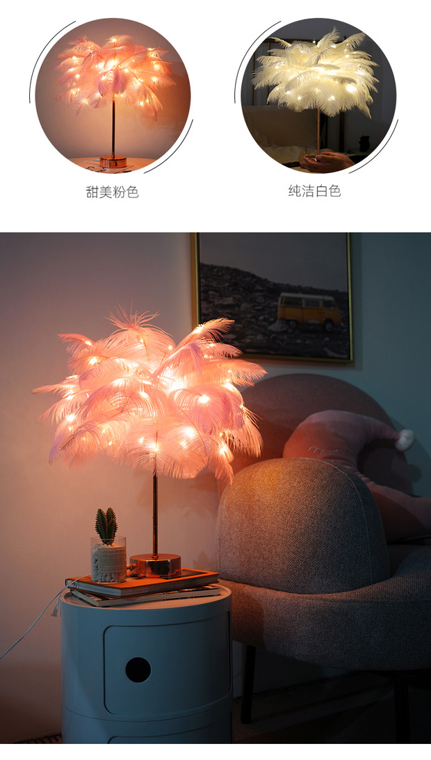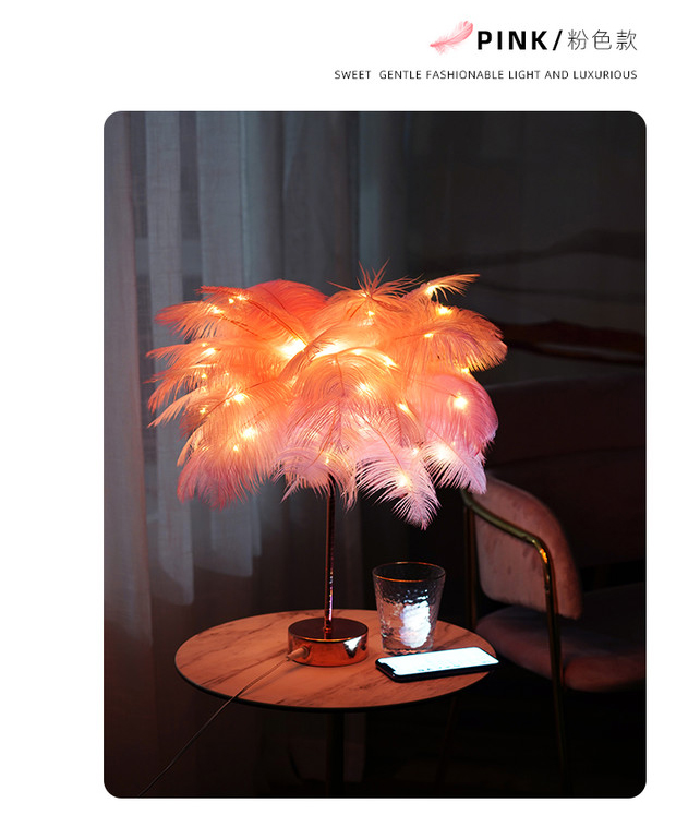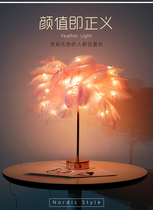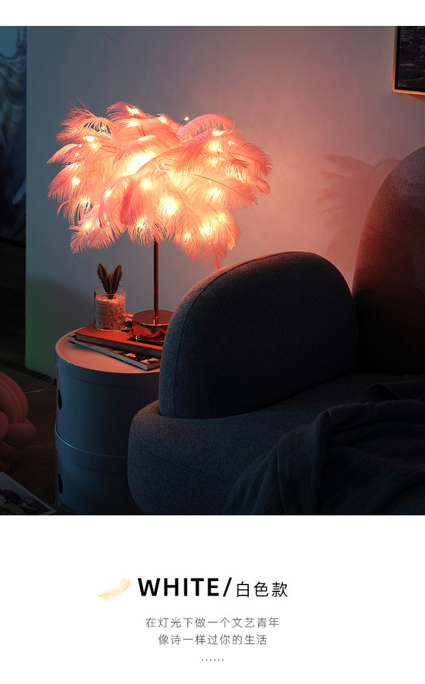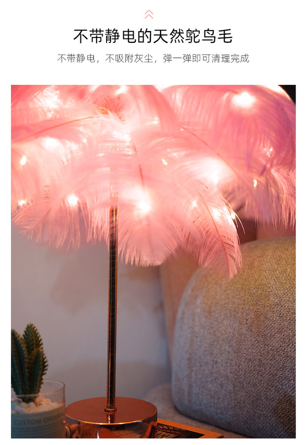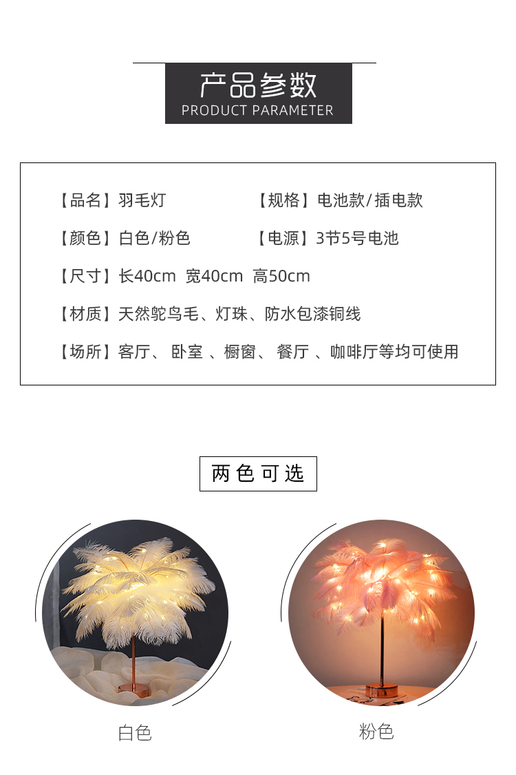 底座直径为10cm,灯插上羽毛后整体高度为50厘米左右