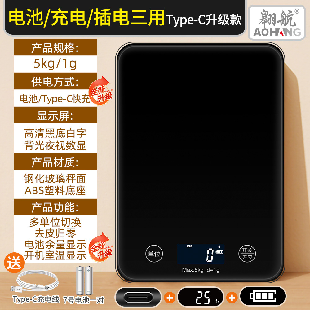 공장 주방 가늠자 1g 그램 규모 전자 가늠자 터치 스크린 강화 유리 주방 전자 저울 주방 정확한 그램
