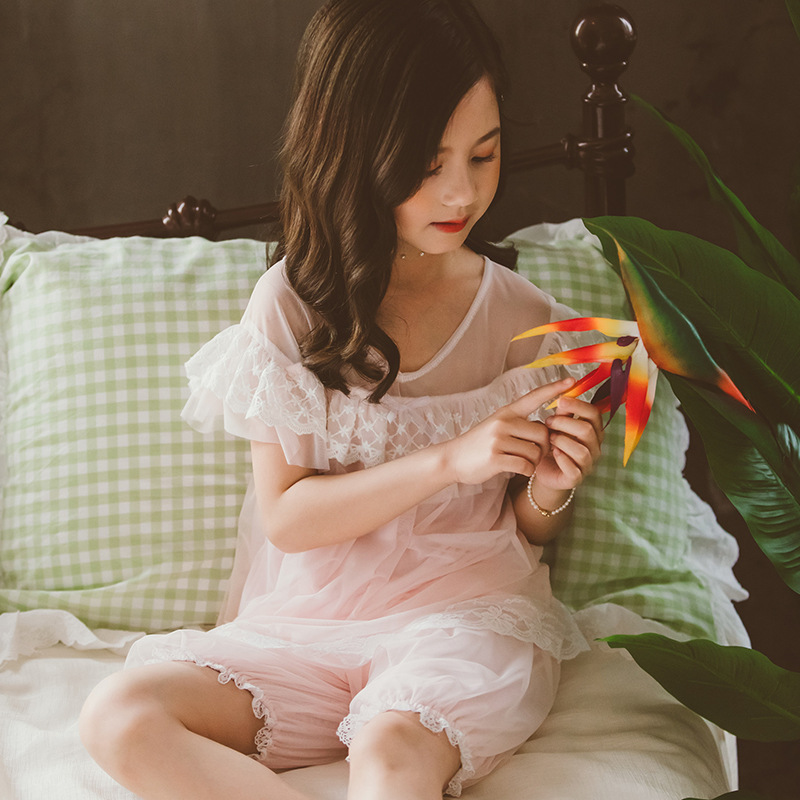 여아 잠옷 공주 여름 어린이 어린 소녀 학생 얇은 세트 아기 반팔 에어컨 가정 옷 서양 스타일스토어 가기
