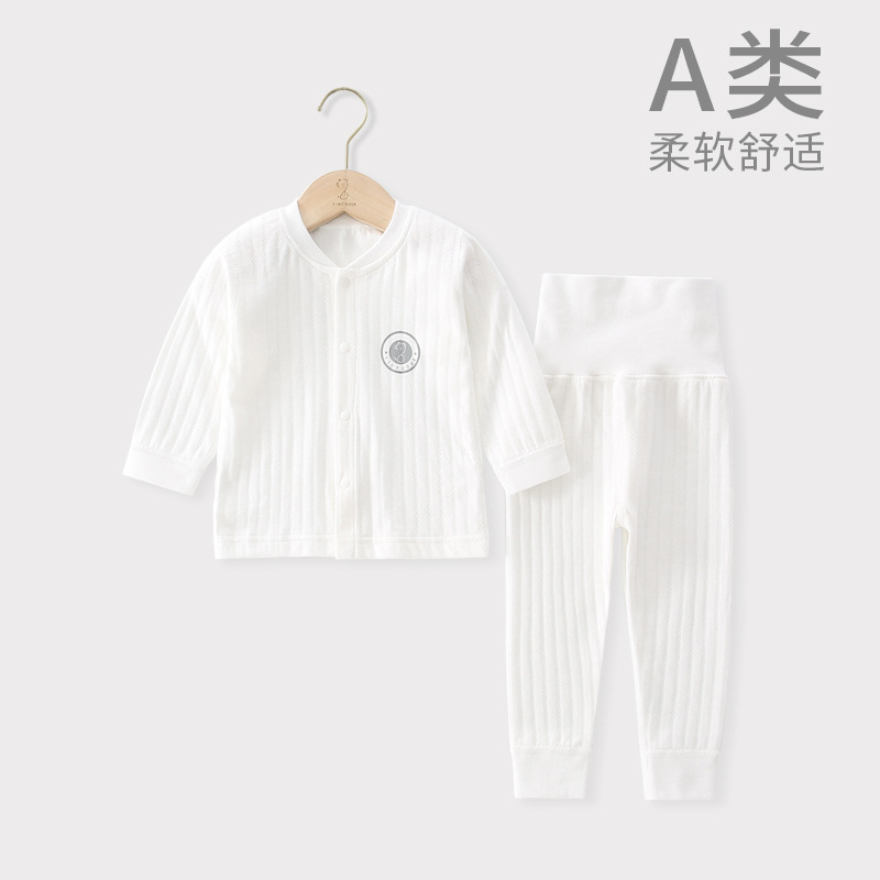봄과 가을 순면 잠자는 옷 세트 아기 가을 옷 아기 기본 속옷 분할 긴 소매 높은 허리 배 보호 가을과 겨울 옷스토어 가기