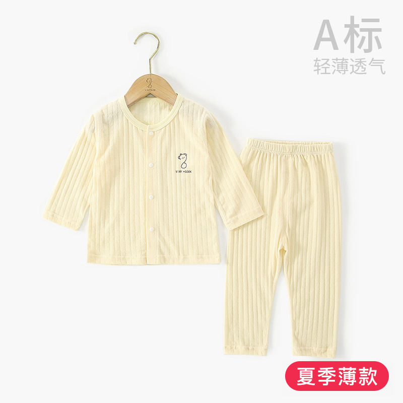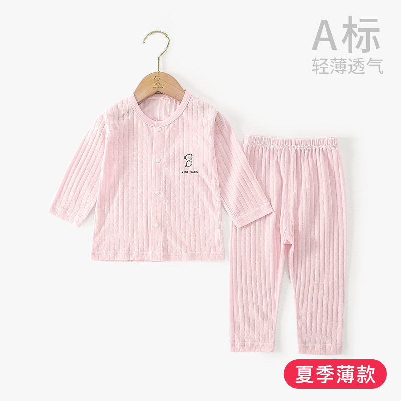 봄과 가을 순면 잠자는 옷 세트 아기 가을 옷 아기 기본 속옷 분할 긴 소매 높은 허리 배 보호 가을과 겨울 옷
