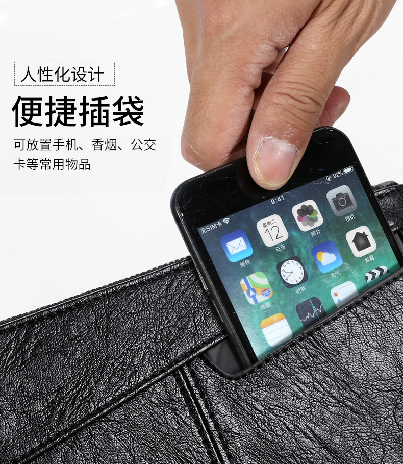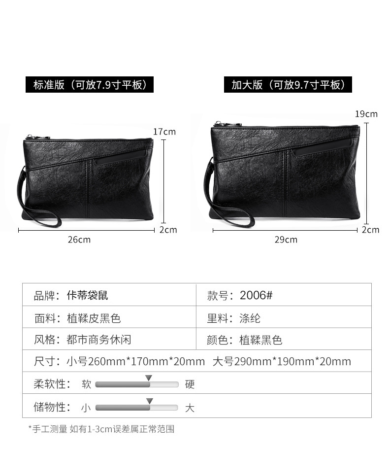 카디 캥거루 남성용 핸드백 봉투형 가방 대용량 소프트 가죽 클러치백 휴대폰 가방 지갑 2006 해외 공급스토어 가기