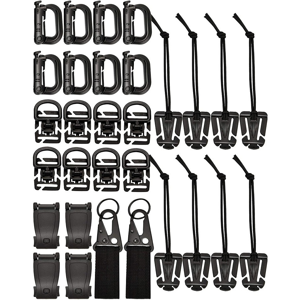 组合详情:8个卷线扣,8个D型扣,8个背包扣,4个莫利扣,2个挂钩