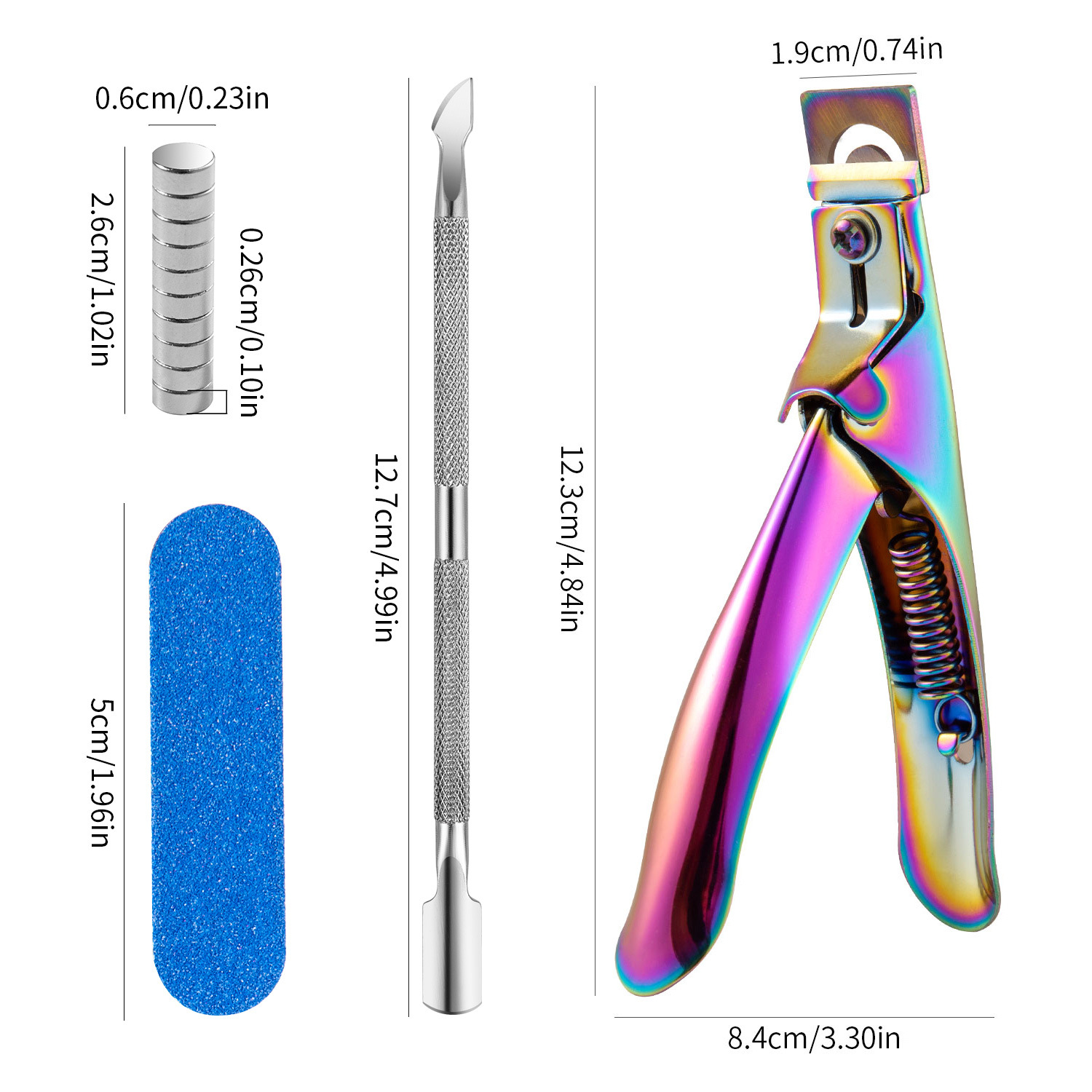 • 10X 원형 자석 + 스트립 + 각질 푸셔 + 컬러 도금 티타늄 컬러 한 단어 가위