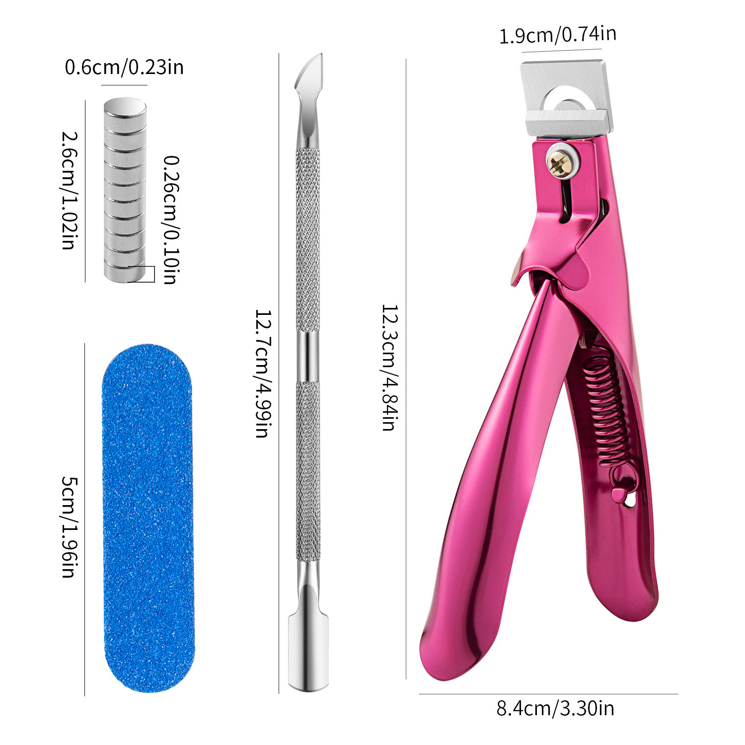 • 10X 원형 자석 + 스트립 + 각질 푸셔 + 한 단어 컷 로즈 레드