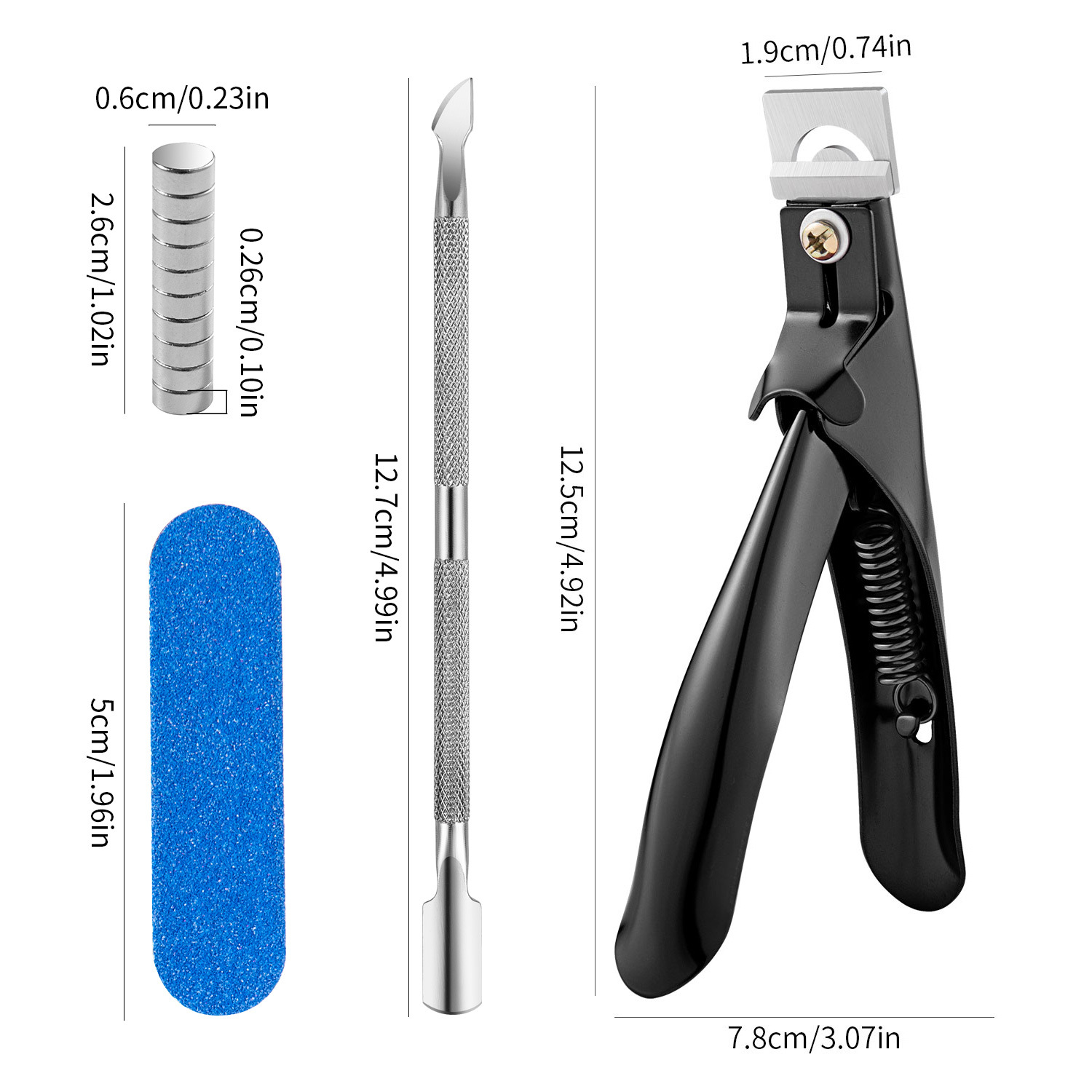 • 10X 원형 자석 + 스트립 + 각질 푸셔 + 플랫 컷 블랙