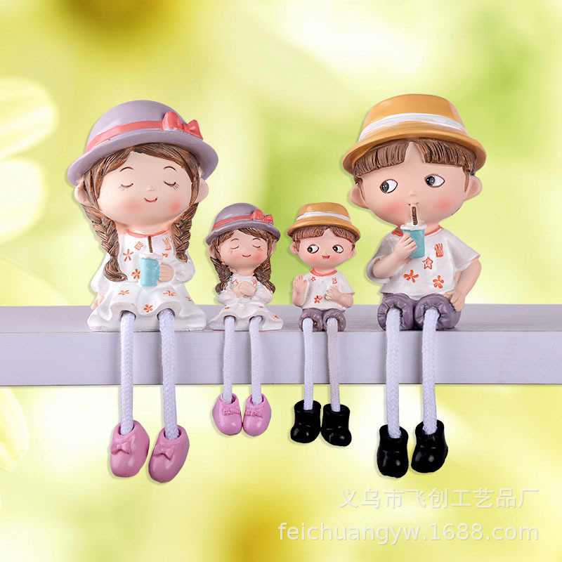 귀여운 선반 수지 교수형 발 인형 공예품 4 개의 신공장 직공급 크리에이티브 만화 가족