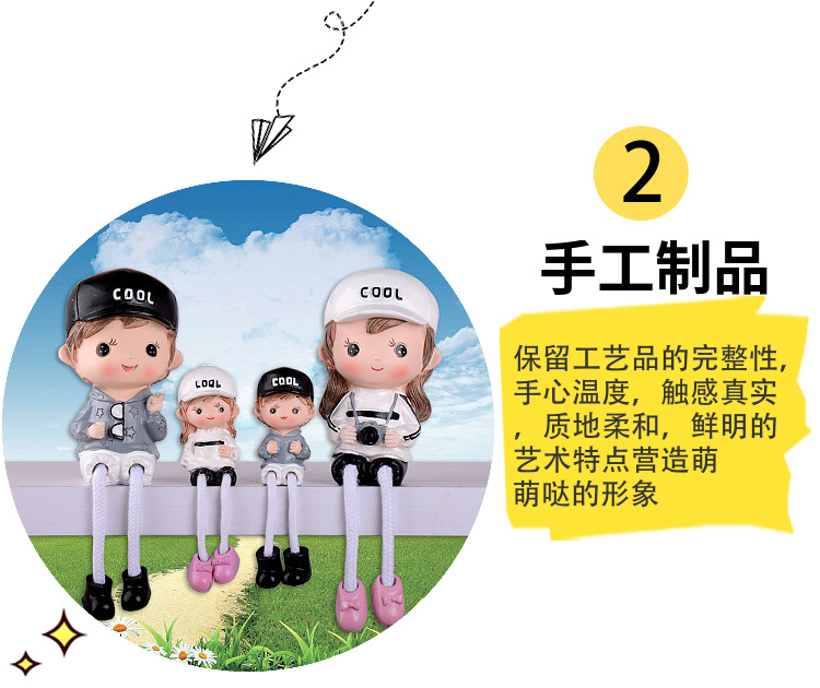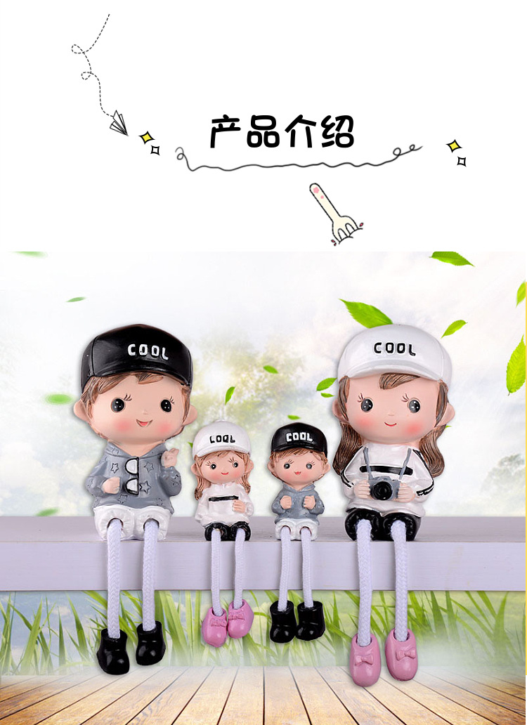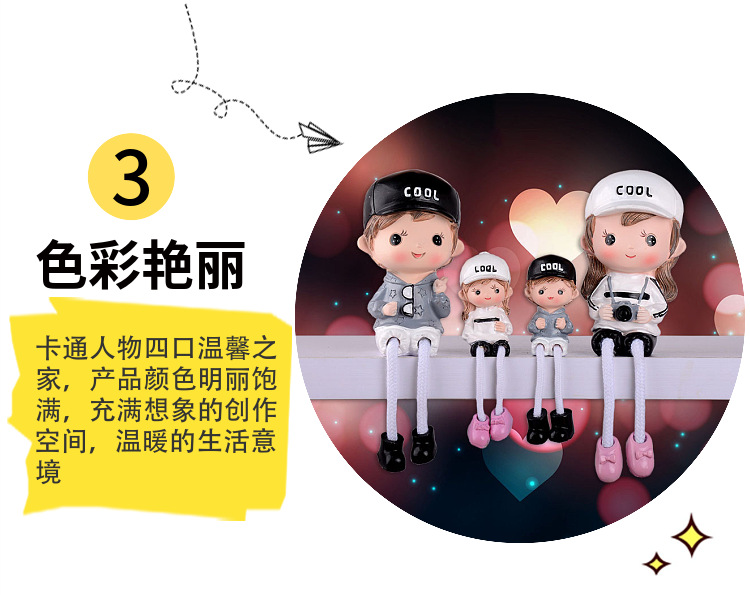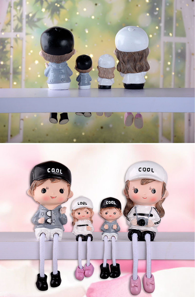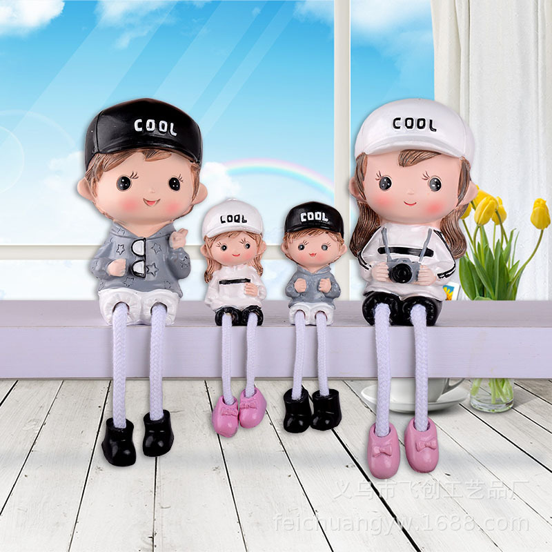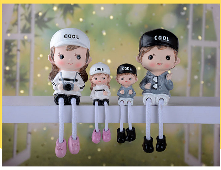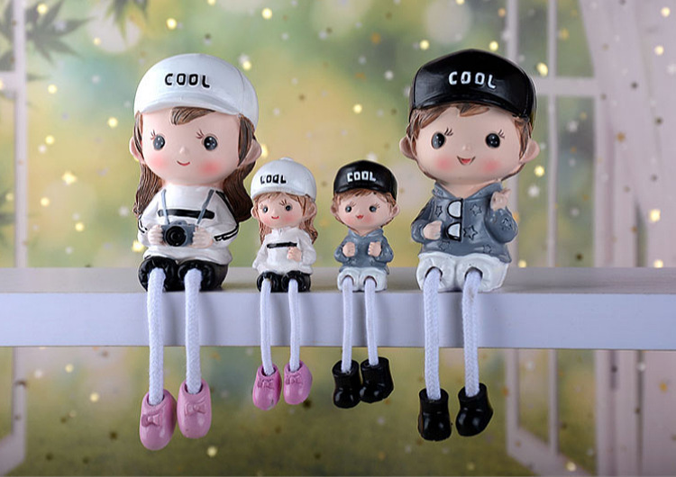 귀여운 선반 수지 교수형 발 인형 공예품 4 개의 신공장 직공급 크리에이티브 만화 가족
