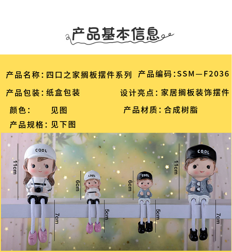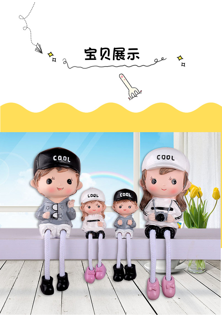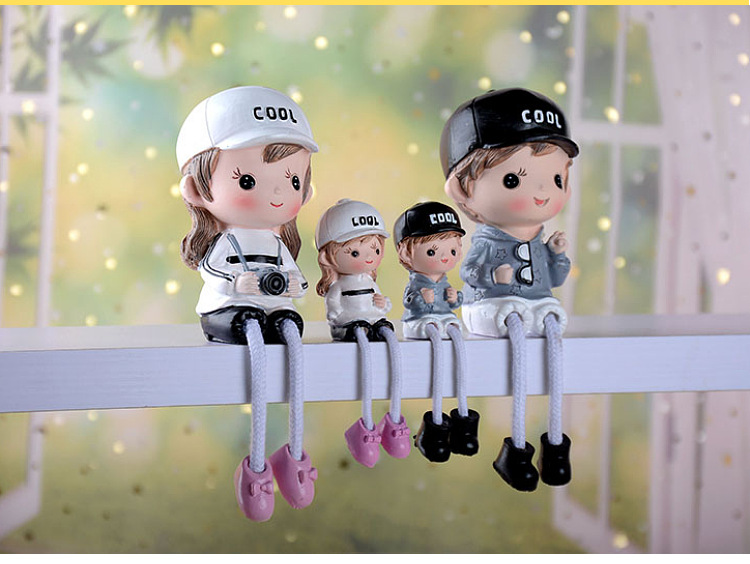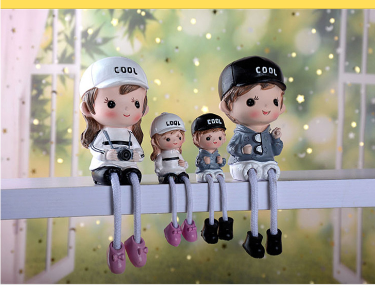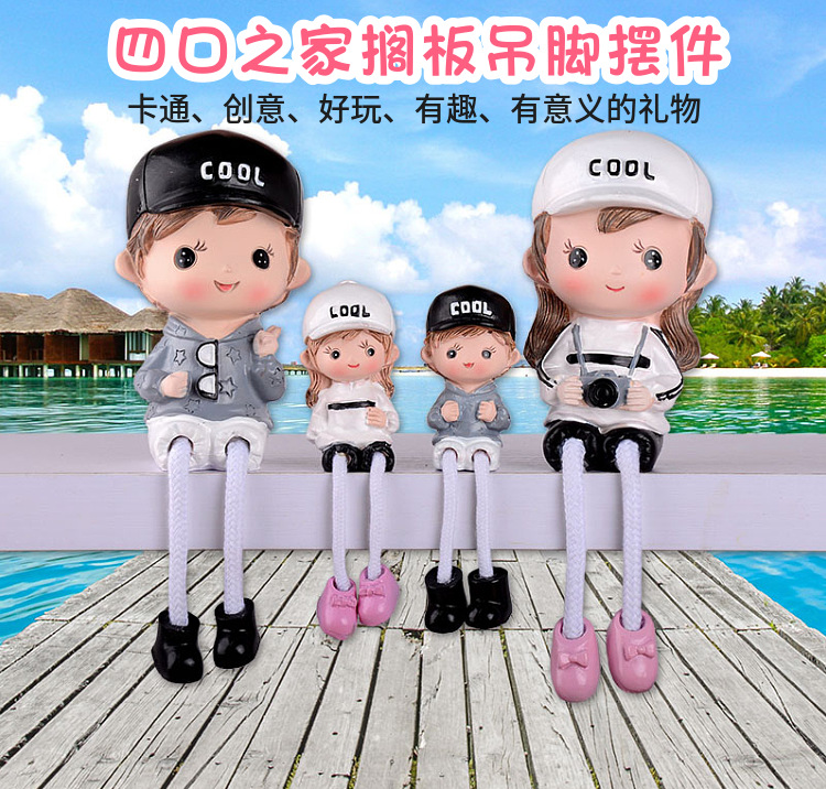 귀여운 선반 수지 교수형 발 인형 공예품 4 개의 신공장 직공급 크리에이티브 만화 가족스토어 가기