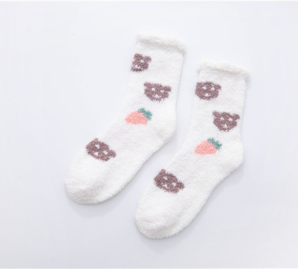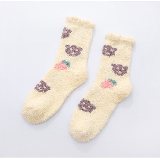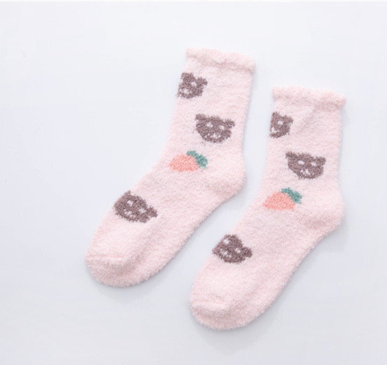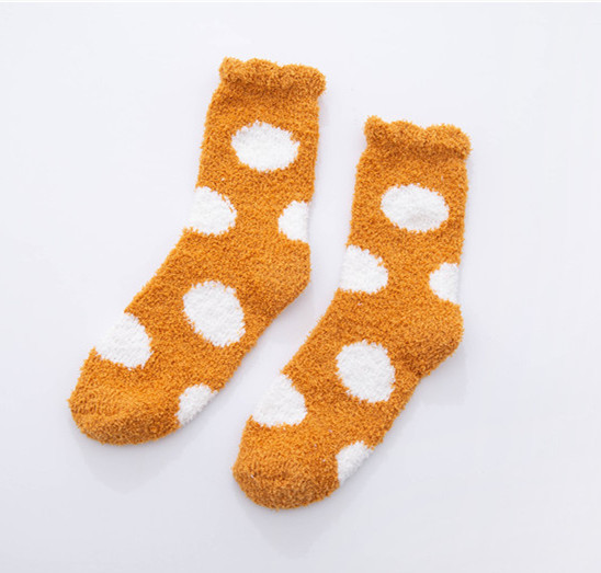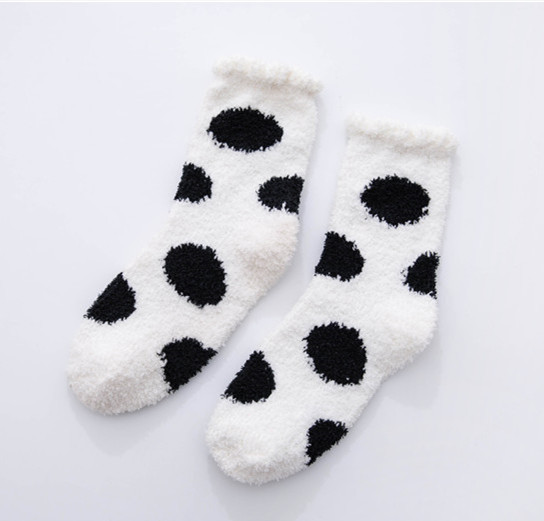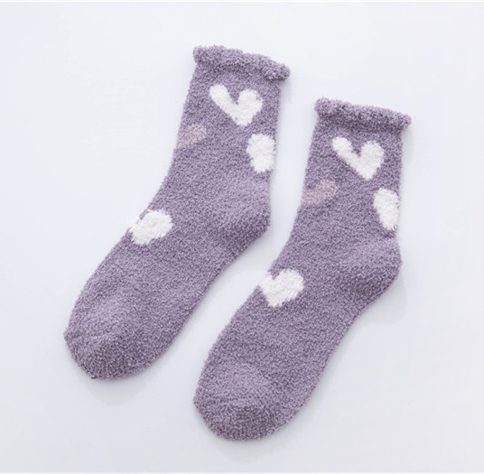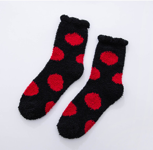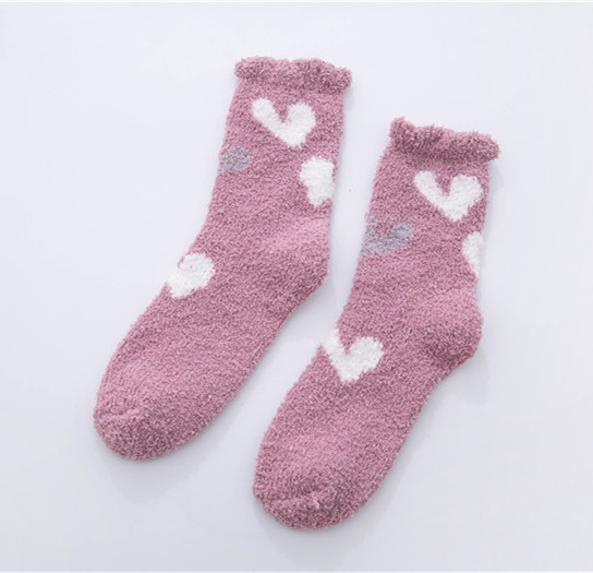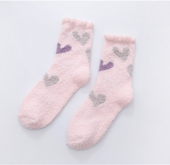 가을과 겨울 두꺼운 따뜻한 산호 양털 양말 작은 신선한 물방울 무늬 복숭아 심장 시리즈 홈 수면 양말 도매