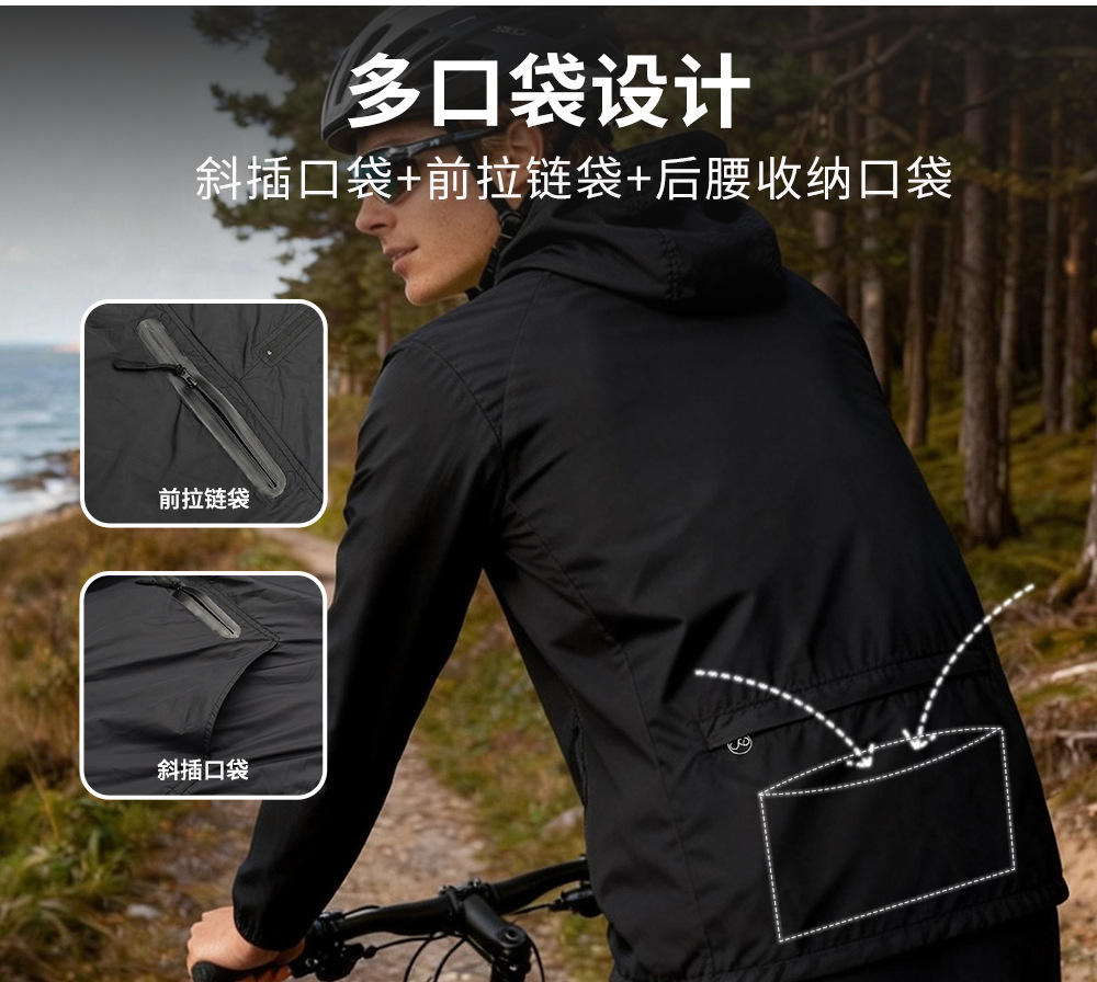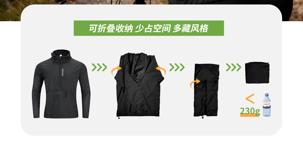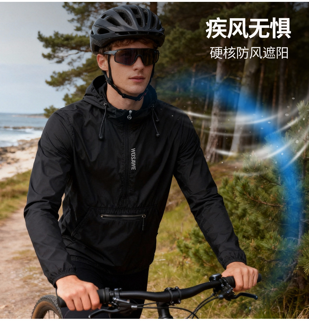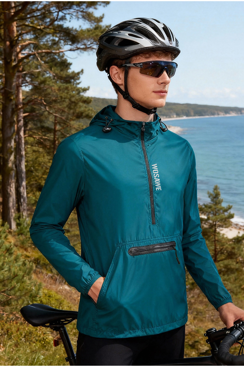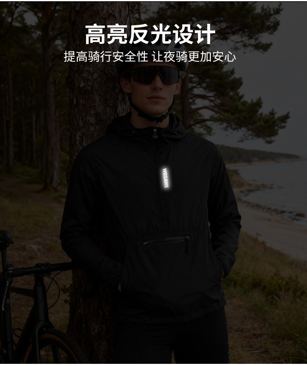 WOSAWE骑行连帽衫可以轻松地打包到自己的后袋口袋中,以便快速,轻松地存储。您随时可以随身携带。