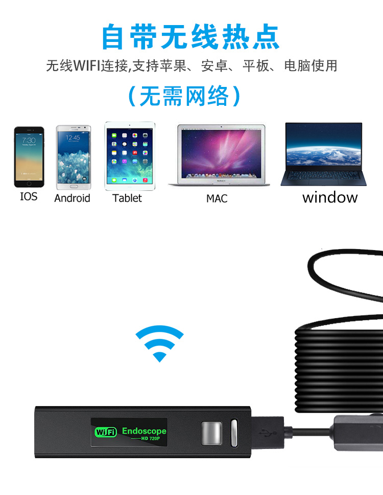 【热销款】WIFI通用内窥镜 拍照 视频录制 防水探头工业内窥镜,超大电池容量,使用时间更耐久, 大量现货,需要的请联系,量大更优惠。