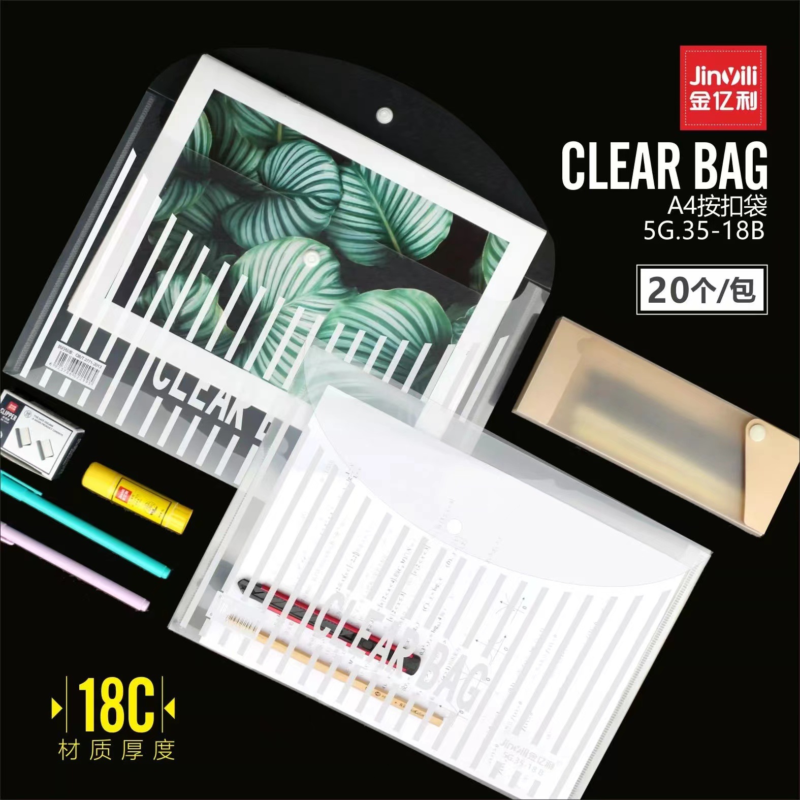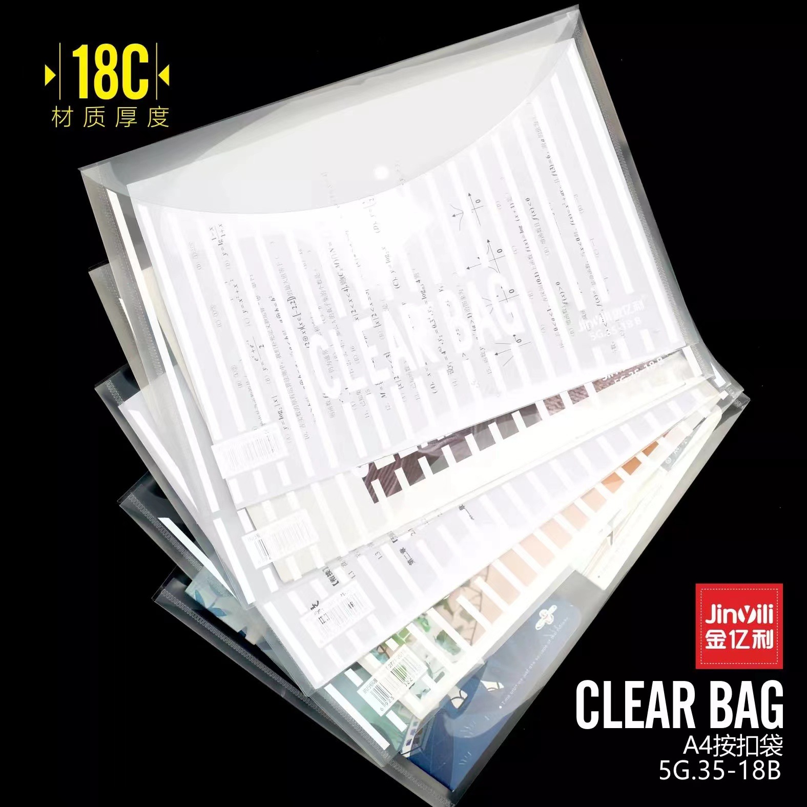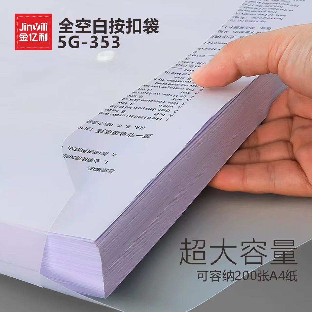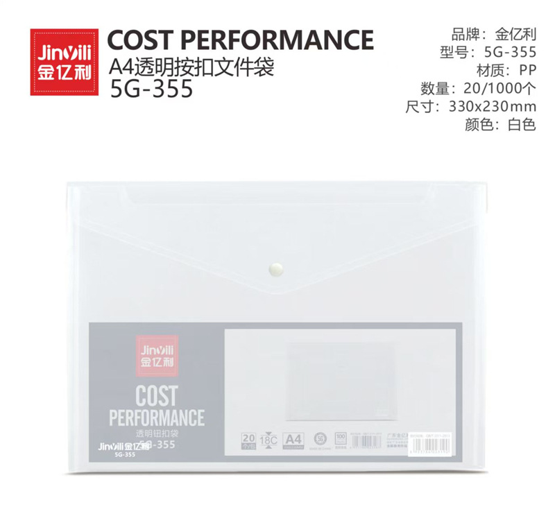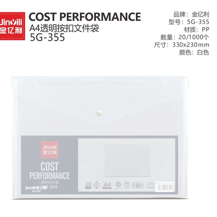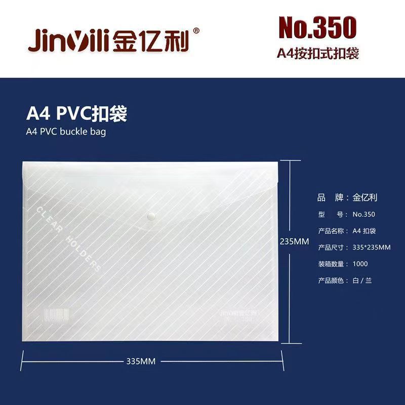 Jin Yili 대용량 A4 투명 파일 가방 스냅온 가방 데이터 가방 파일 가방 학생 시험 용지 보관 가방 Dewang
