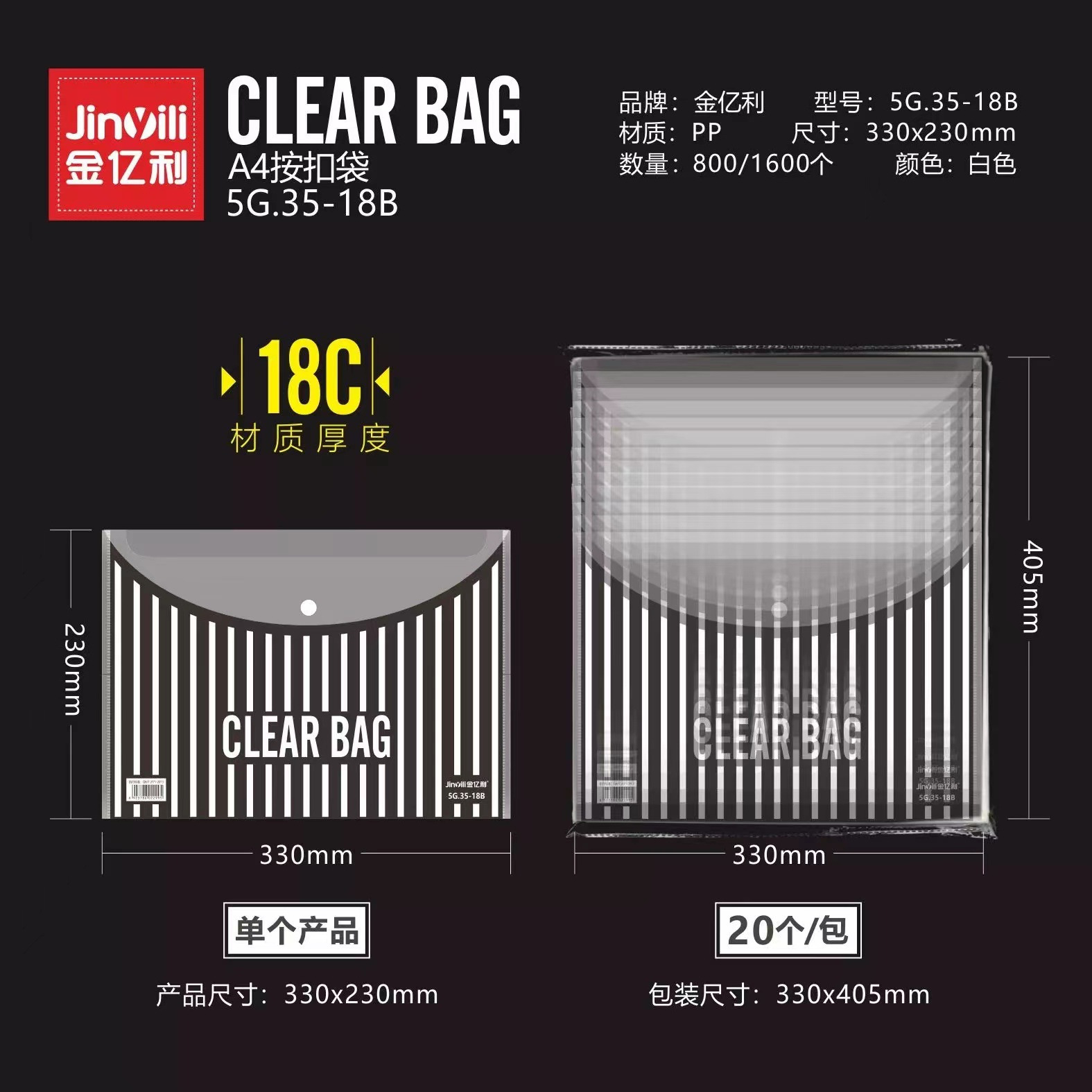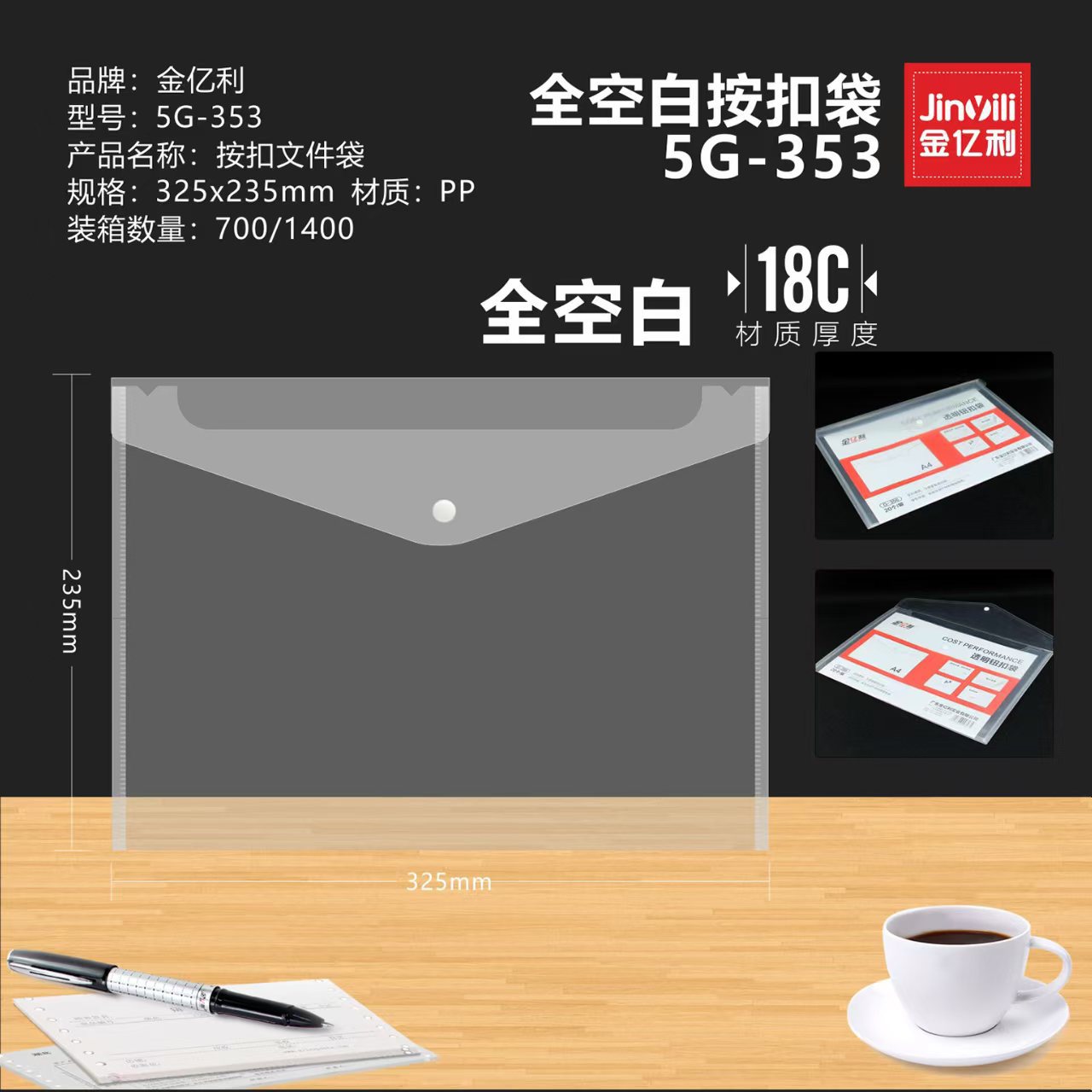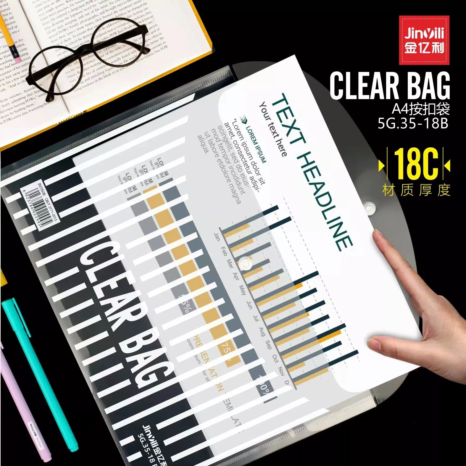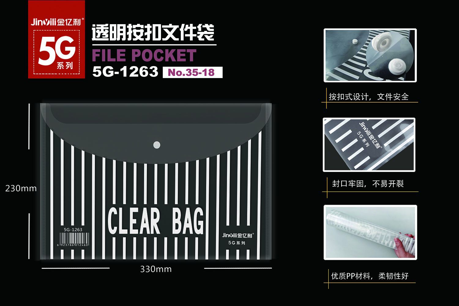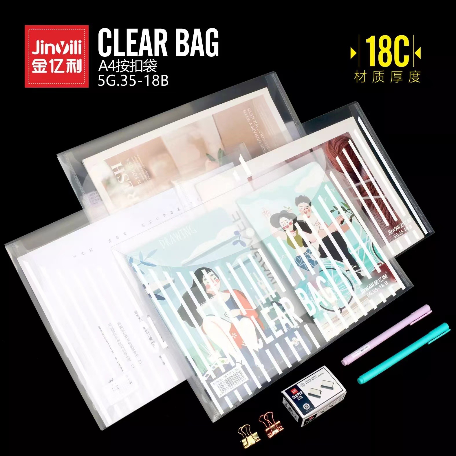Jin Yili 대용량 A4 투명 파일 가방 스냅온 가방 데이터 가방 파일 가방 학생 시험 용지 보관 가방 Dewang