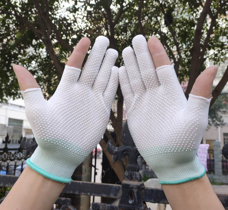 노출 된 두 손가락 나일론 장갑 노동 보호 누출 두 손가락 작업 반 손가락 플라스틱 운전 흰색 블랙