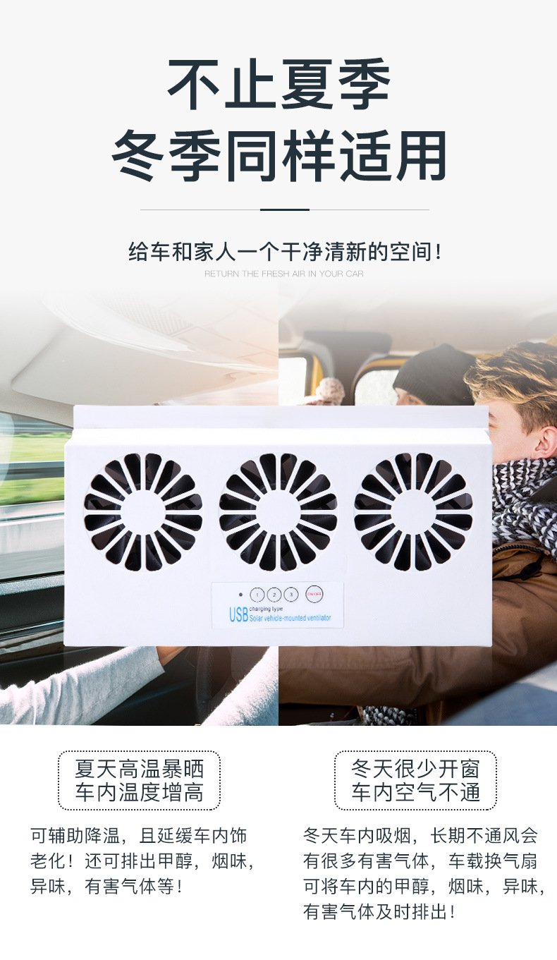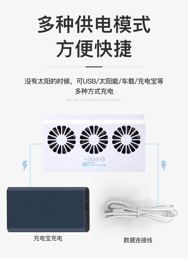 新款太阳能车载降温神器车内排风扇 空气循环排气扇汽车换气扇