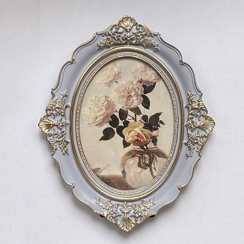 유럽식 조각된 수지 액자 타원형 빈티지 골동품 액자 벽걸이 가능 청동 액자