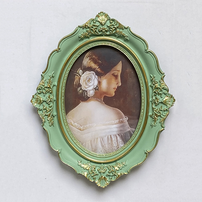 유럽식 조각된 수지 액자 타원형 빈티지 골동품 액자 벽걸이 가능 청동 액자스토어 가기