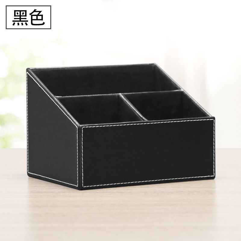 비즈니스 가죽 문구류 리모컨 수납함 다기능 데스크탑 정리함 창의적인 사무용 도매 수납 책상 정리함