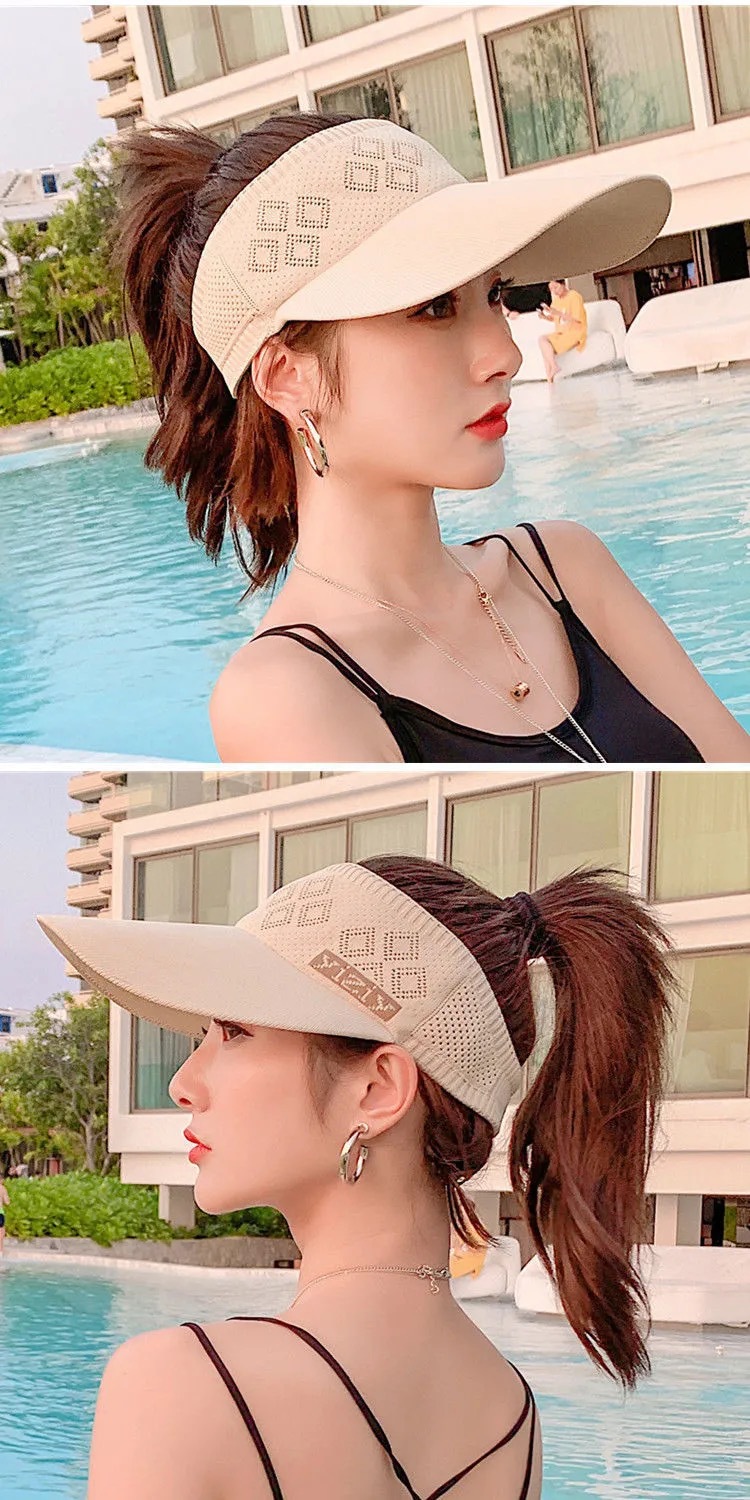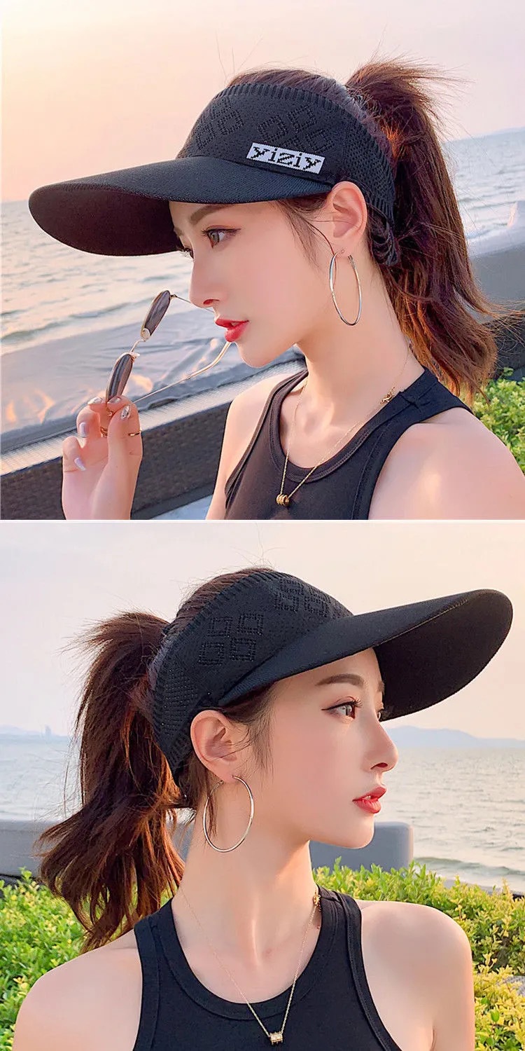 모자 여자의 봄과 여름 한국 스타일 유행 인터넷 인기 통기성 차양 모자 오리 혀 빈 탑에 여분의 긴 콩없는 야구 모자