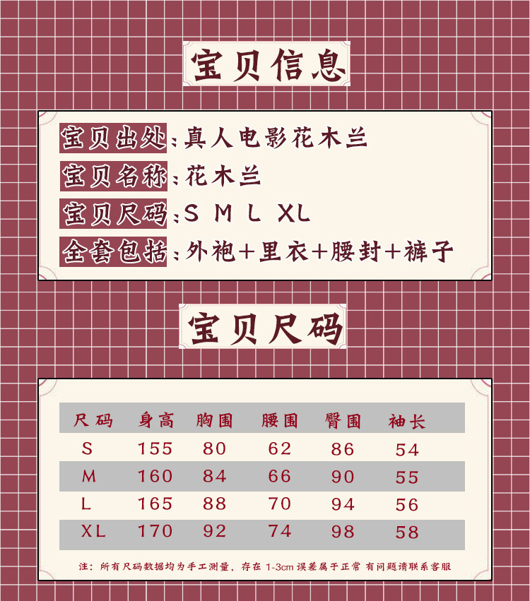 화무란 코스프레 의상 실사 버전 아버지를 대신하여 군복무하는 여성 캐릭터 어린이 코스프레 공연 코스프레스토어 가기