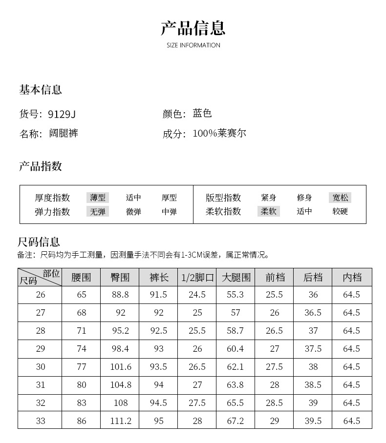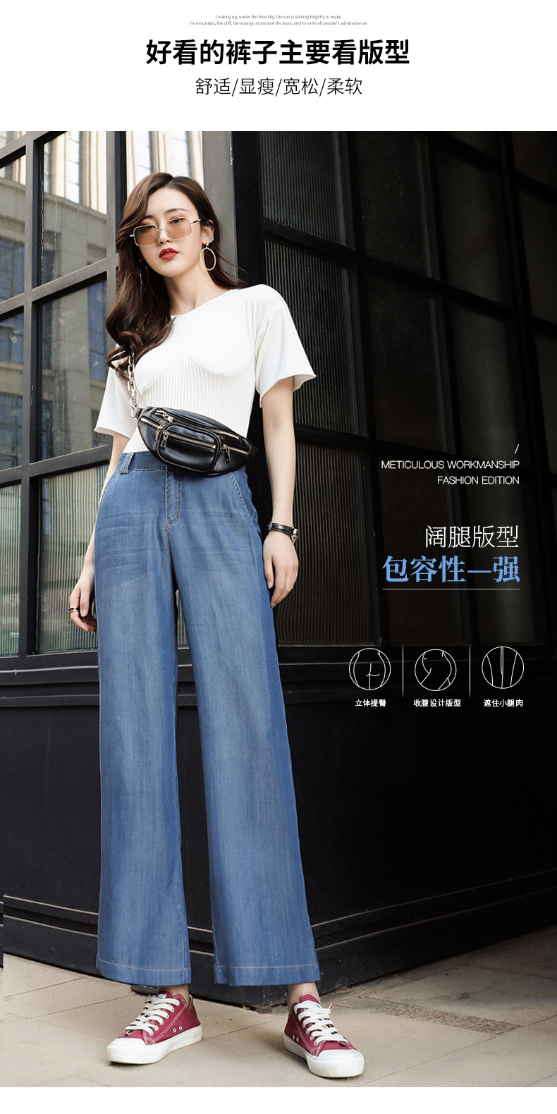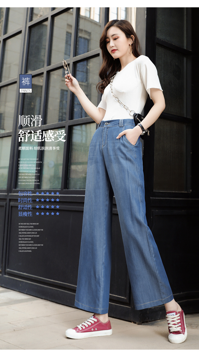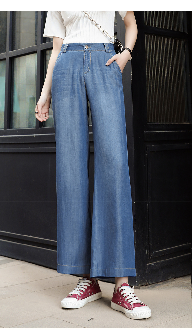 2025 여성용 가을 와이드 팬츠 하이웨이스트 텐셀 데님 팬츠 스트레이트 나인포인트 팬츠 9129J 하이웨이스트 슬림핏