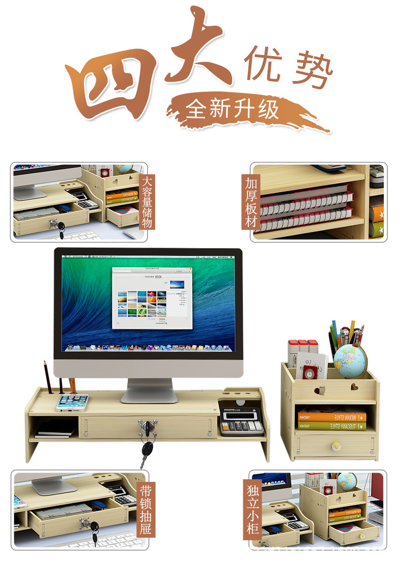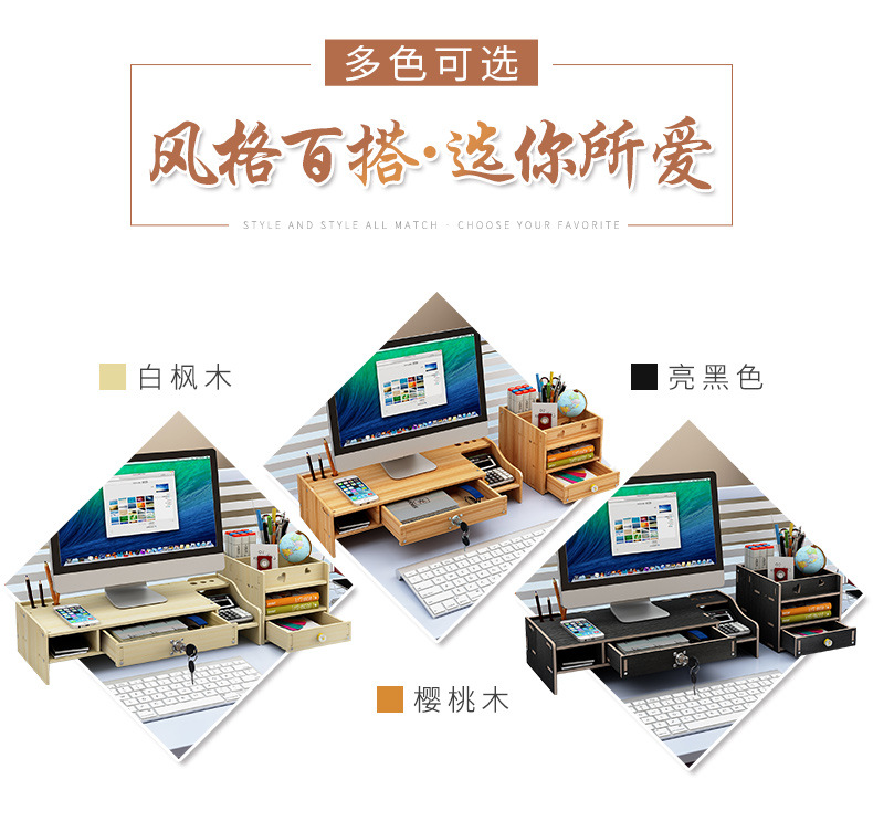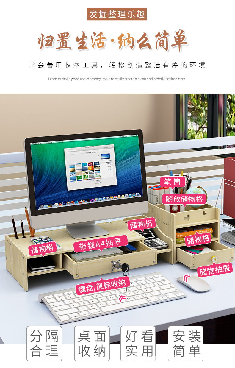 국경을 넘는 데스크탑 컴퓨터 모니터 화면 높은 베이스 브래킷 사무실 데스크탑 키보드 정리 및 보관