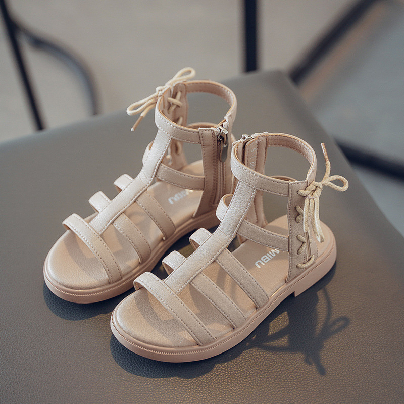 여자 로마 샌들 2025 여름 새로운 한국 스타일 패션 중대형 어린이 하이 탑 어린 소녀 공주 신발