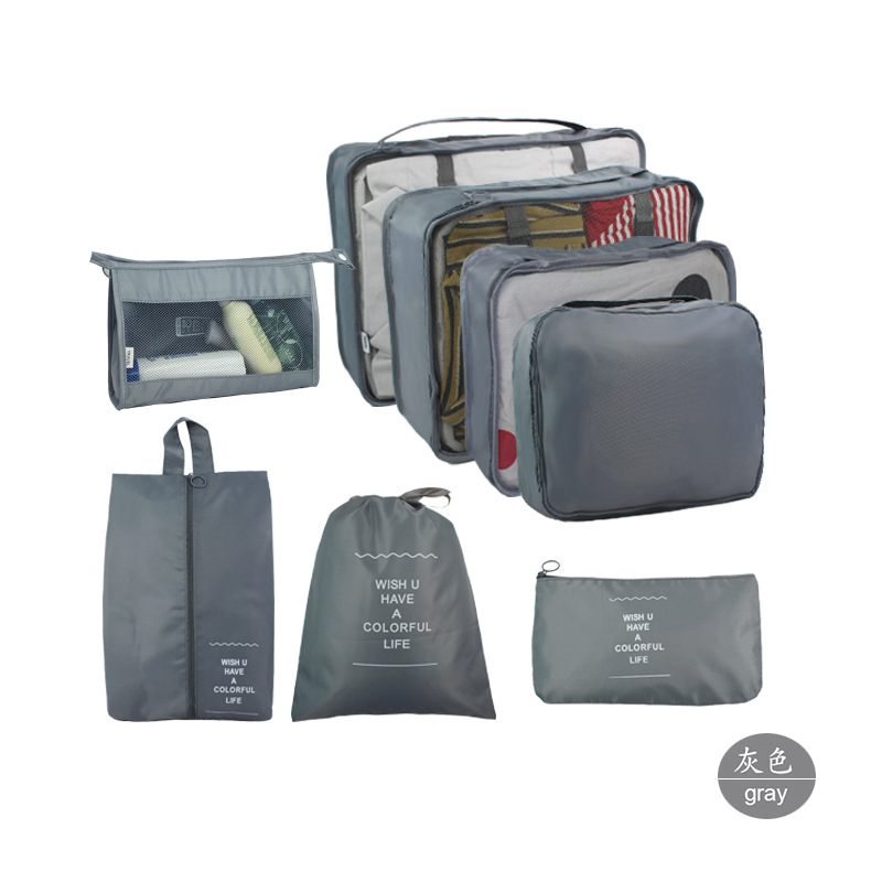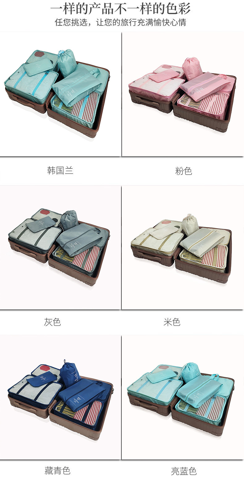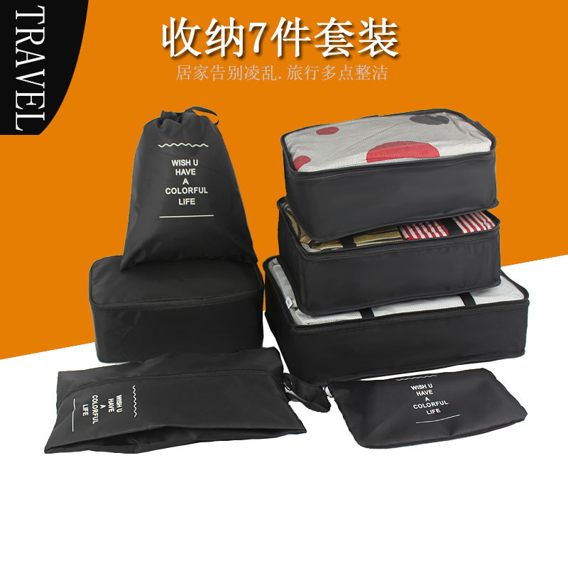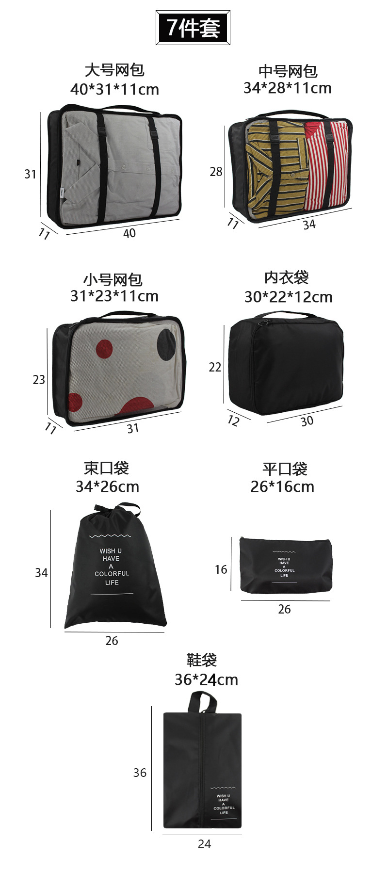 7종 세트 크로스보더 아마존 여행 정리 가방 옥스포드 천 방수 출장용 여행 가방 의류 수납 경량 여행스토어 가기
