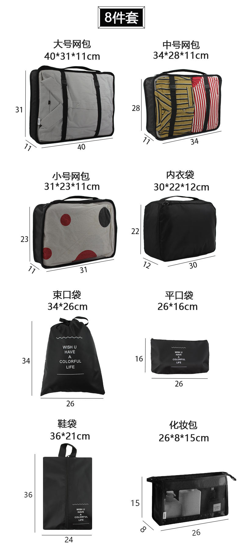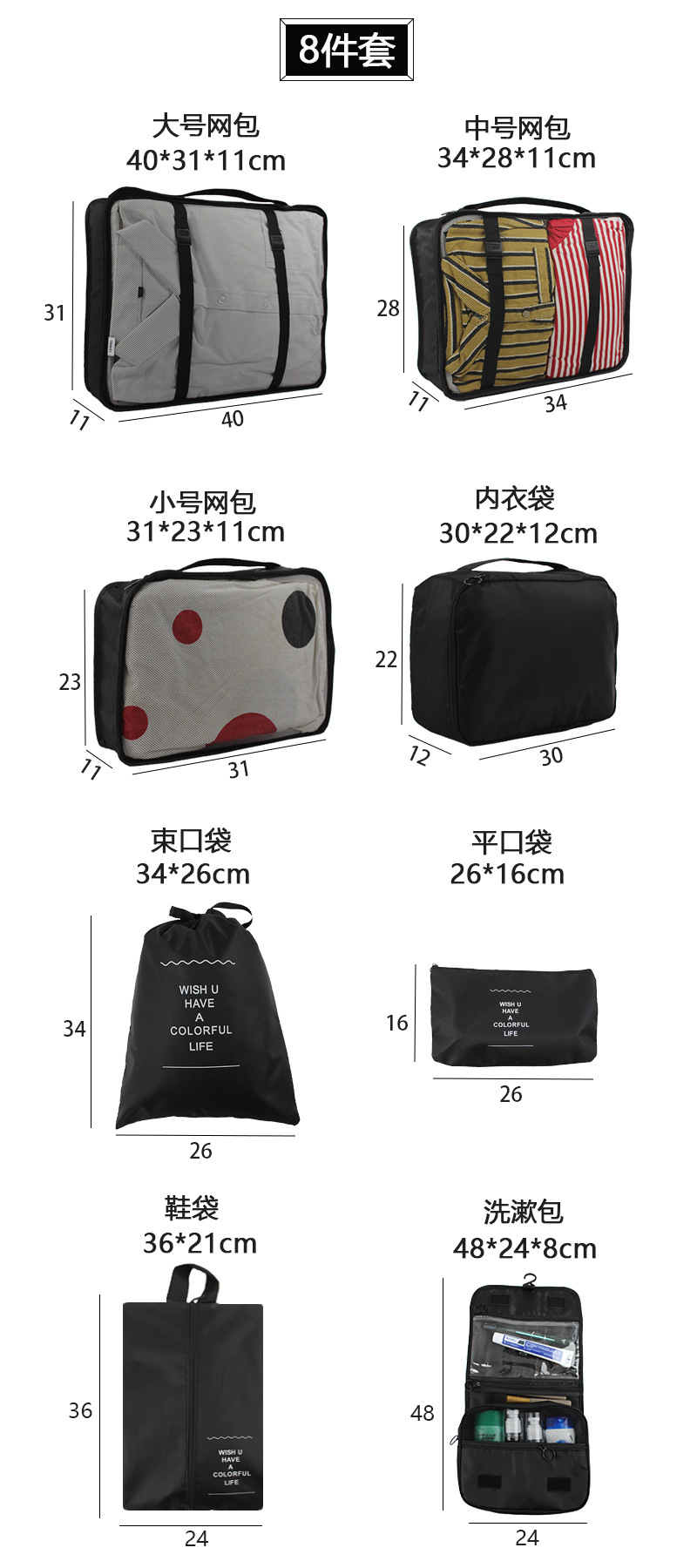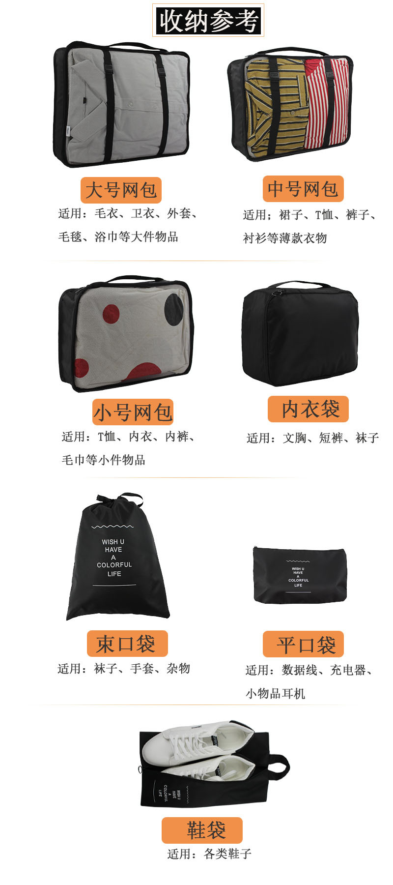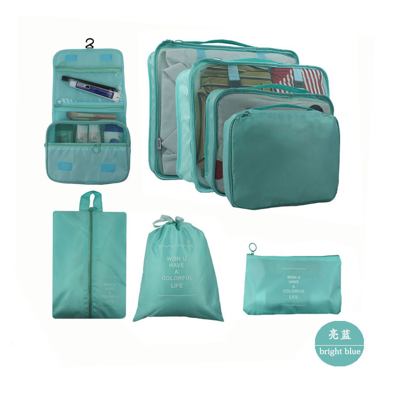 7종 세트 크로스보더 아마존 여행 정리 가방 옥스포드 천 방수 출장용 여행 가방 의류 수납 경량 여행스토어 가기