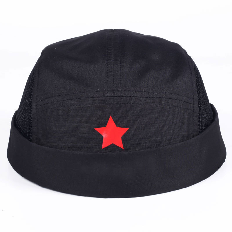 • 블랙 레드 스타 사이드 하프 거즈 속건 플로어 캡