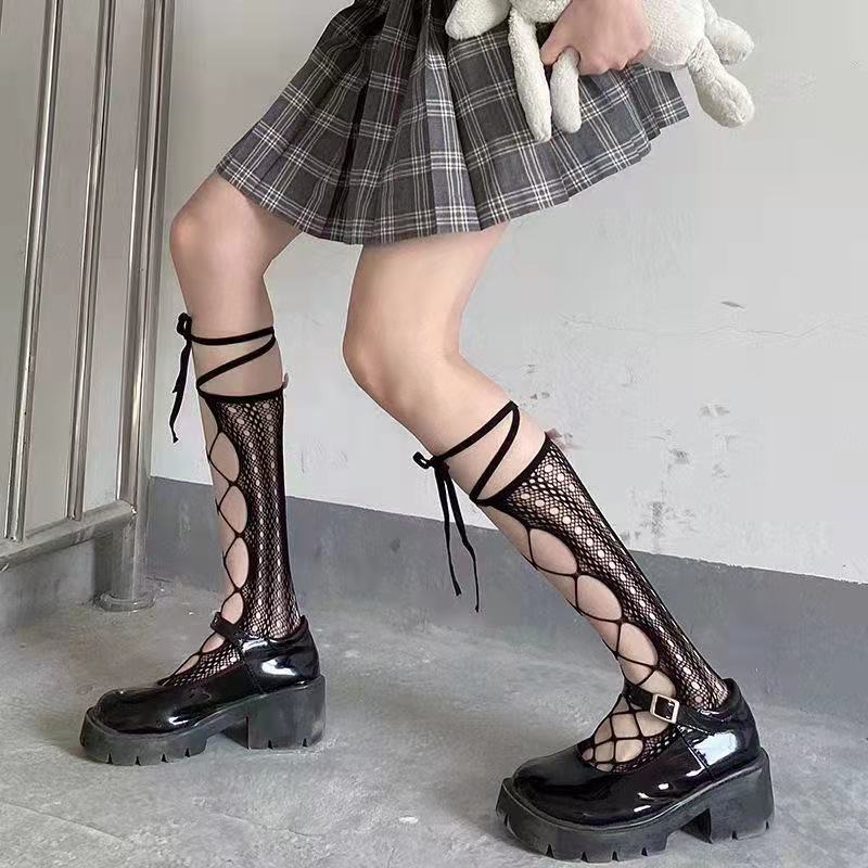 • 망사 스타킹은 중간 튜브 스타킹을 검은 색으로 교차합니다.