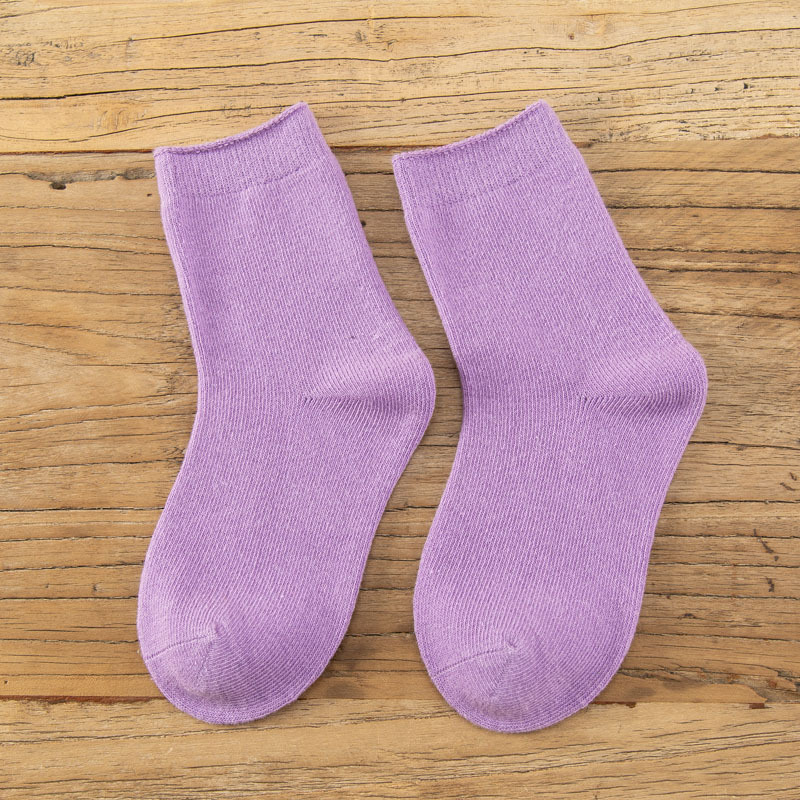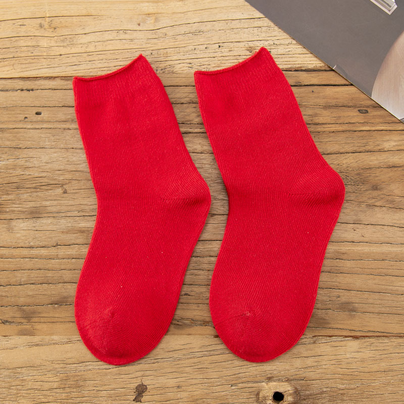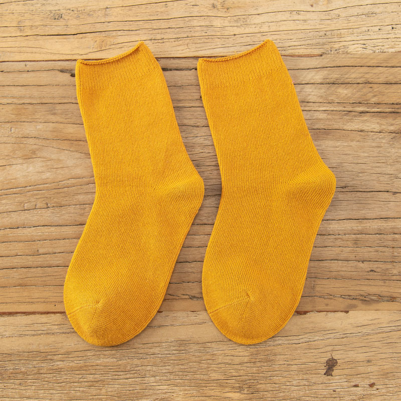 가을과 겨울 어린이 양말 아기면 양말 단색 롤업 스택 남아와 여아 중간 길이 양말 봄과 가을 새로운 유행 양말