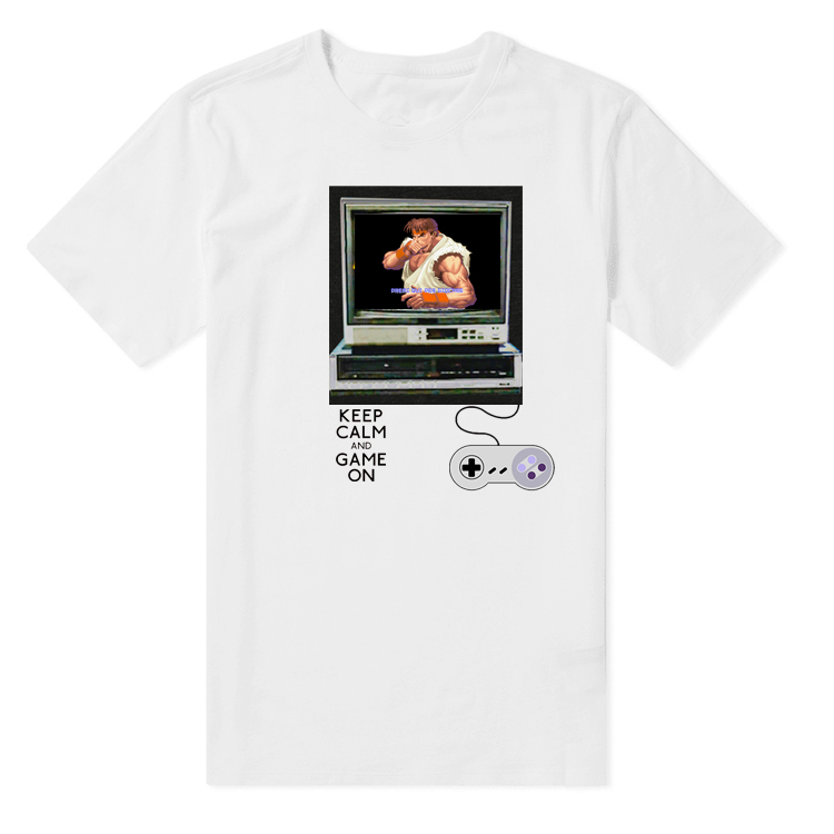 여름 클래식 아케이드 스트리트 벌리 게임 향수를 불러 일으키는 80 년대 반팔 티셔츠 둥근 목면 짧은 t