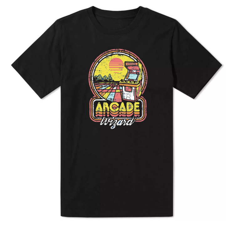 여름 클래식 아케이드 스트리트 벌리 게임 향수를 불러 일으키는 80 년대 반팔 티셔츠 둥근 목면 짧은 t스토어 가기