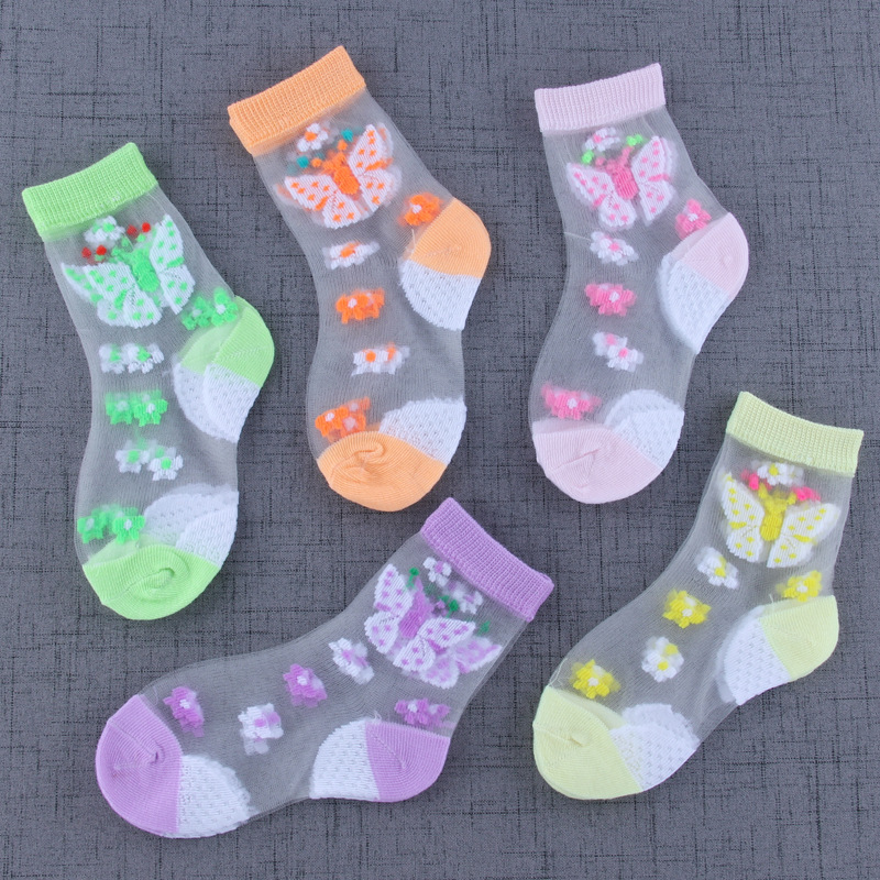 어린이 여름 얇은 크리스탈 양말 그물 통기성 스타킹 소녀 메쉬 양말 아기 양말